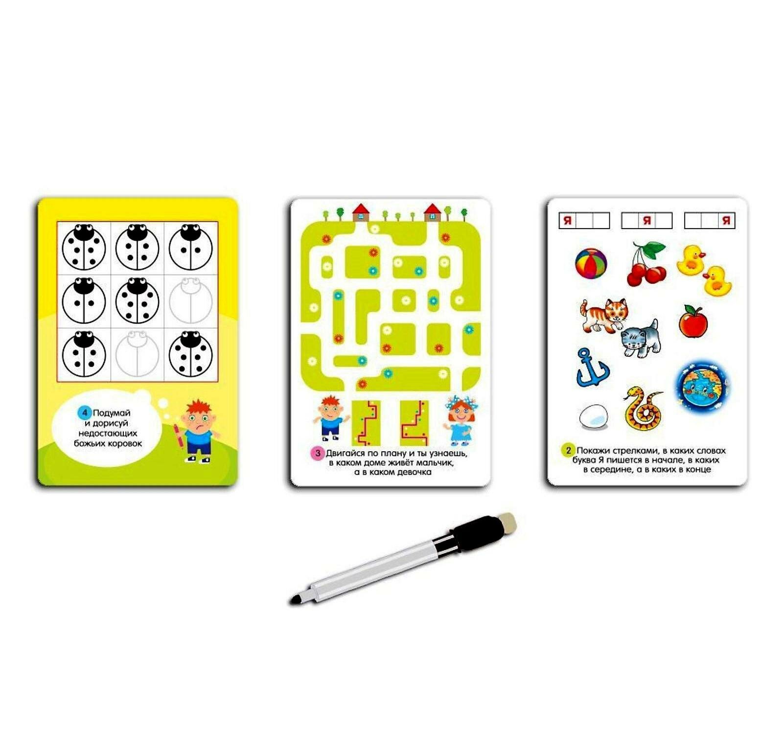 | Комплектация | - 50 двусторонних карточек; - смываемый фломастер. |