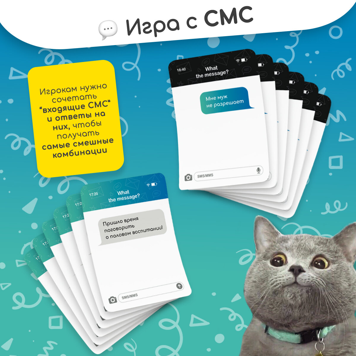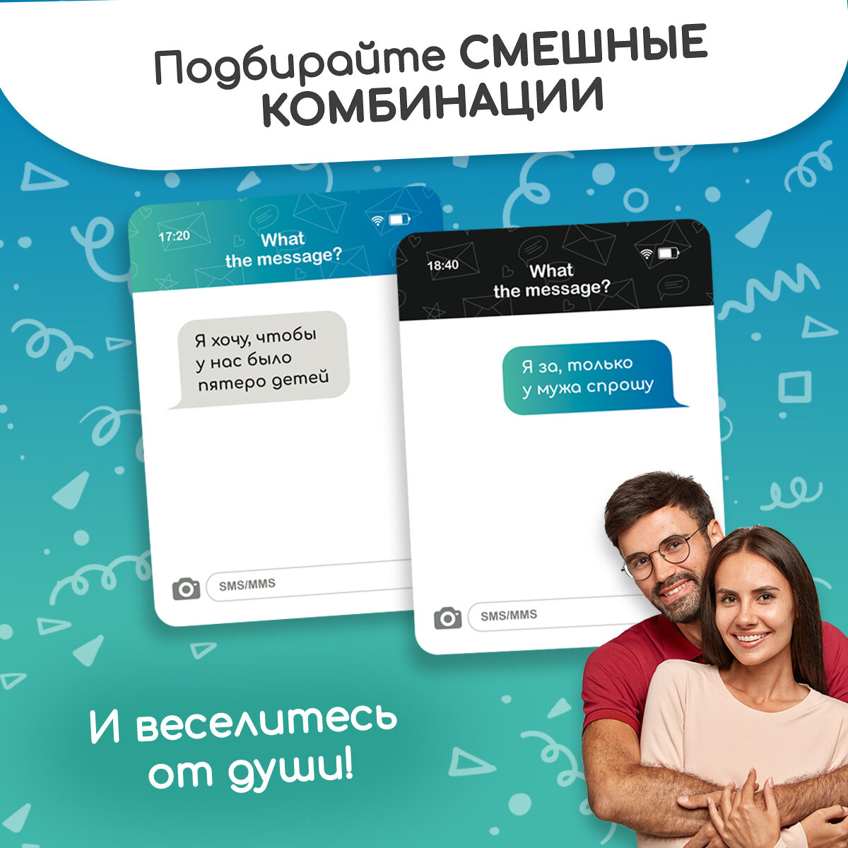 Настольная игра "What the message?" в сообщения для детей от 16 лет и взрослых, на вечеринку, день рождения и подарок. 264 карточки интересное: