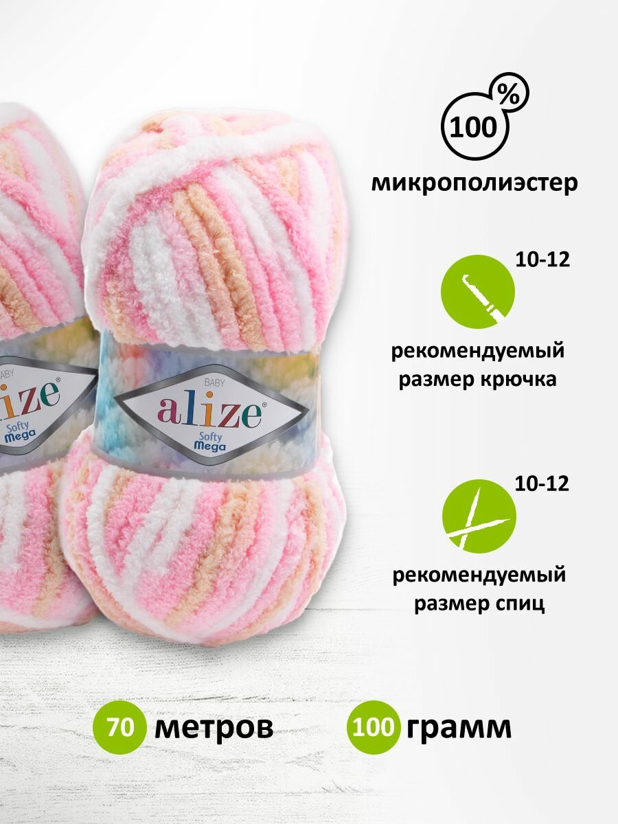 Пряжа ALIZE "Softy Mega", 100 гр 70 м, 100% микрополиэстер, 6046 секционный, 5 шт