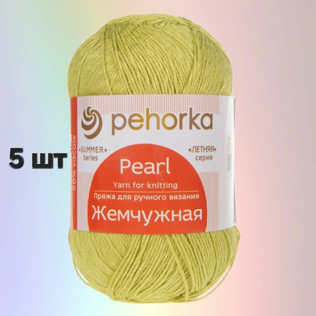 Пряжа для вязания Пехорка 'Жемчужная' 100г, 425м (50% хлопок, 50% вискоза) (33 золотистая олива), 5 мотков