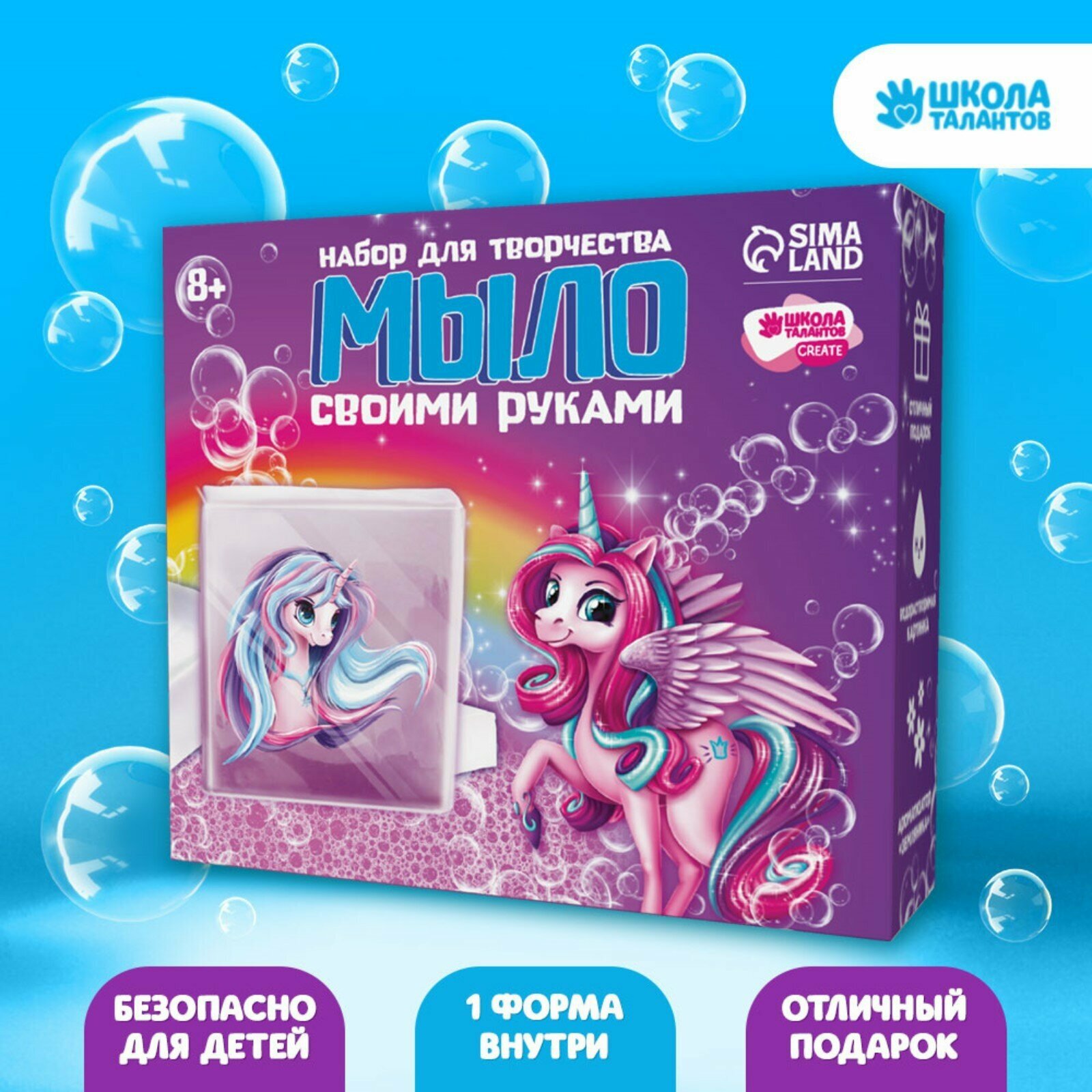Купить Набор для детского творчества "Мыло своими руками. Магический единорог" с картинкой, комплект для мыловарения в домашних условиях: формочка, мыльная основа, водорастворимый рисунок и ароматизатор