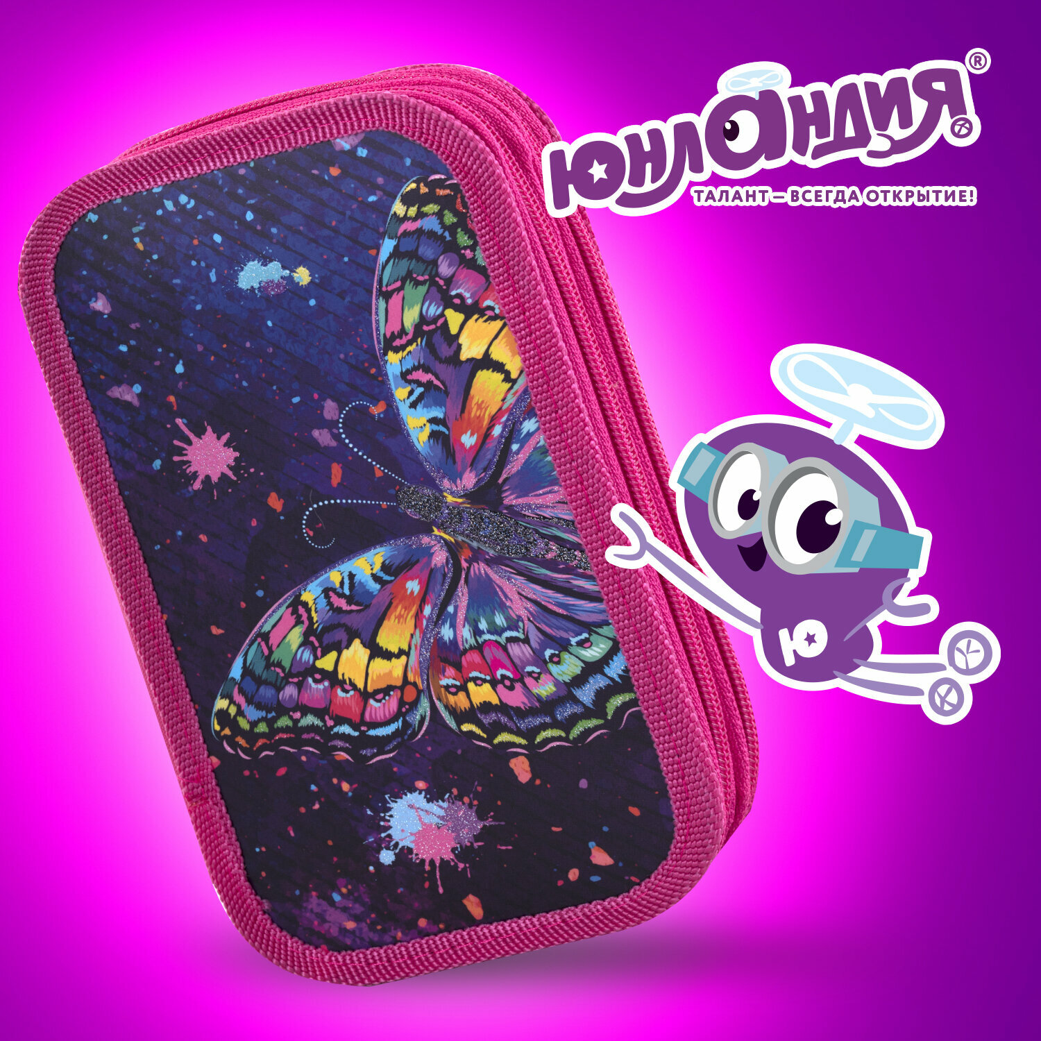 СохранитьПенал школьный для ручек, карандашей Юнландия, 2 отделения, ламинированный картон, блестки, 19х11 см, Colorful butterfly, 270886 интересное:
