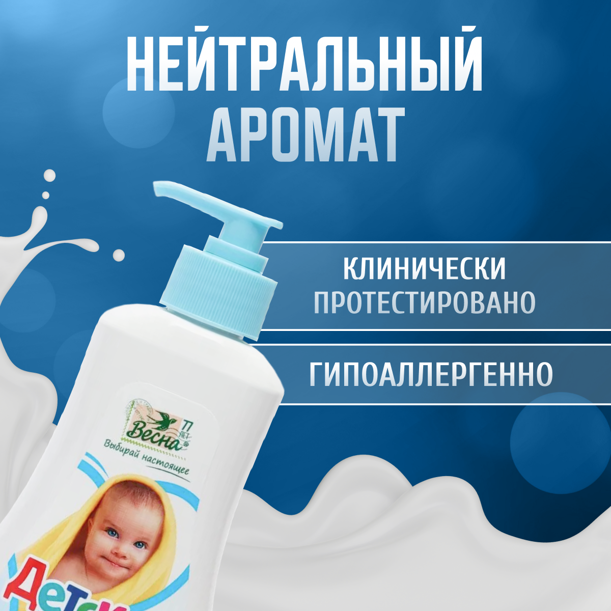 ПКК Весна мыло детское жидкое нейтральное гипоаллергенное с дозатором 280 г Мыло натуральное для новорожденных