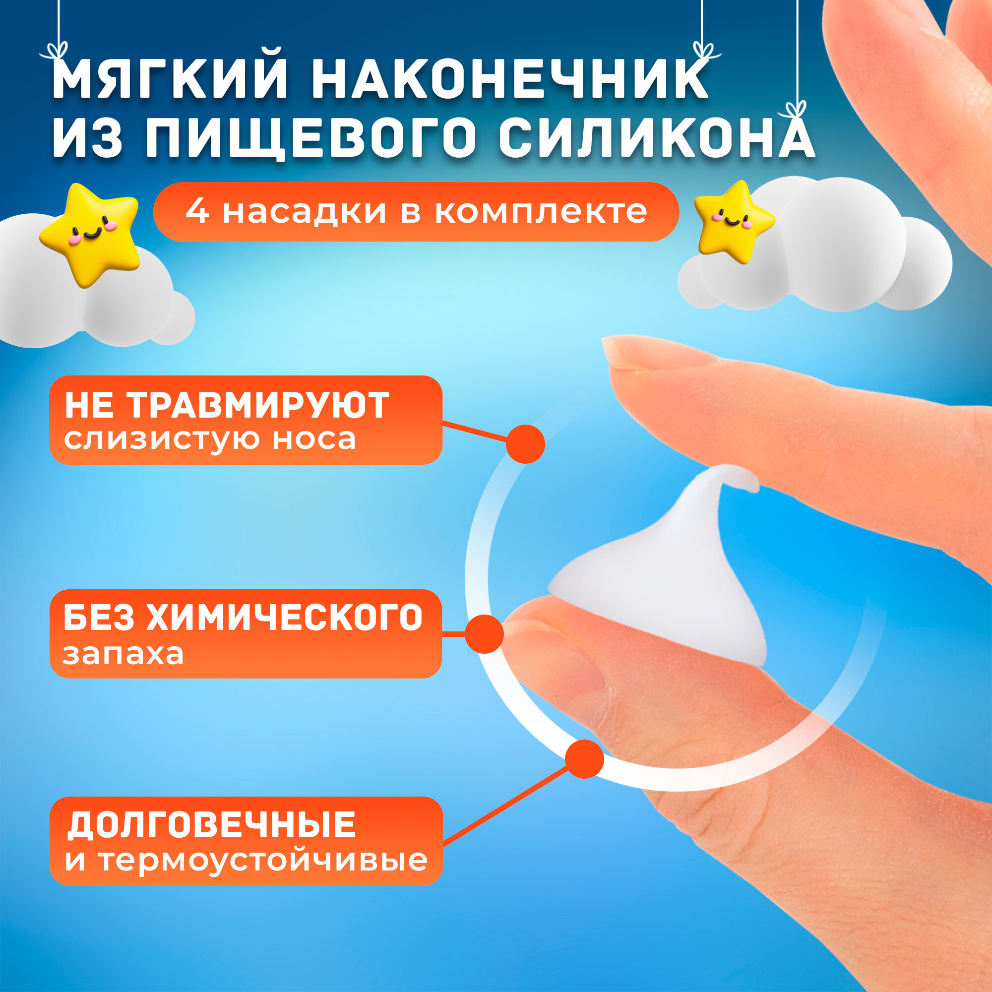 Аспиратор назальный детский, соплеотсос электрический, 4 насадки, для новорожденных, как отривин бэби, бело-голубой
