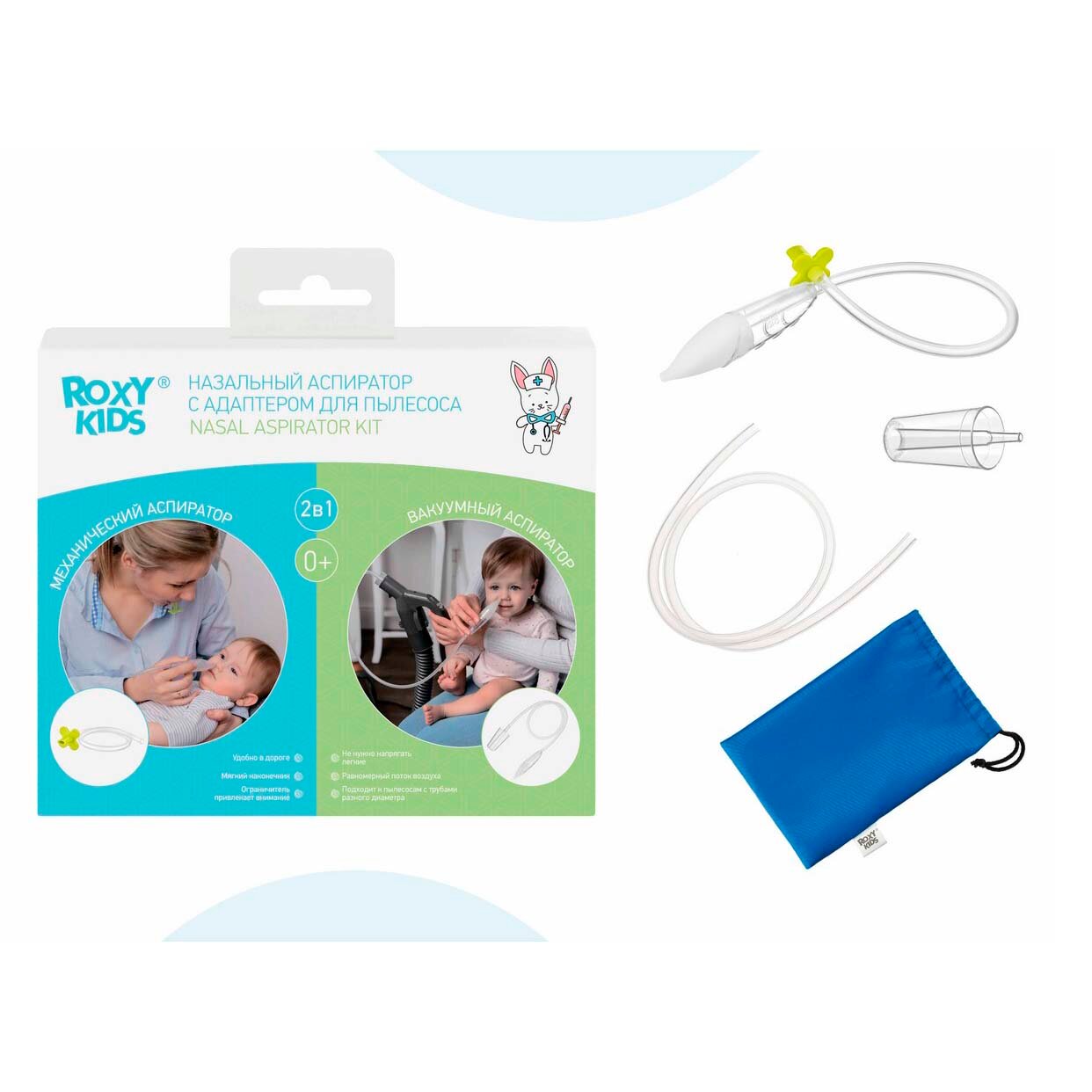 Назальный аспиратор с адаптером для пылесоса Dr.Bunny от ROXY-KIDS 2 в 1 цвет голубой