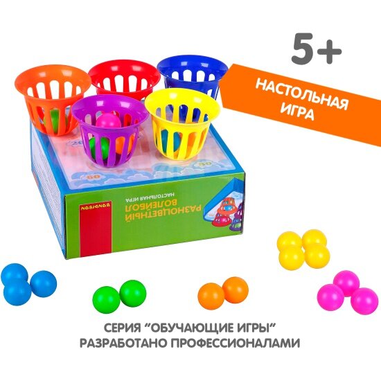 | Отзыв: | Игра прикольная, на изучение цветов и меткость. Коробка является еще и полем, куда вставляются корзинки, это удобно. Моим детям быстро наскучила, возможно, нужно покупать ее в 2-3 года, тогда хватит на подольше. Качество хорошее, запаха у пластмассы нет. |