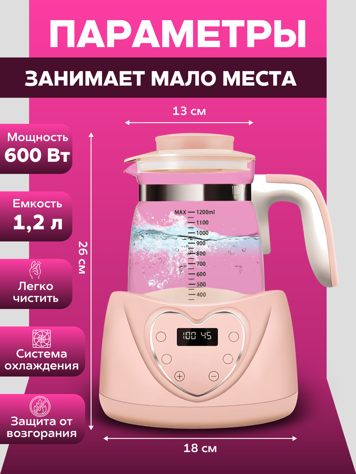 Подогреватель детского питания, стерилизатор бутылочек, сосок, многофункциональный чайник, с контролем температуры 1,2 л, поддержание температуры, таймер, сенсорное управление