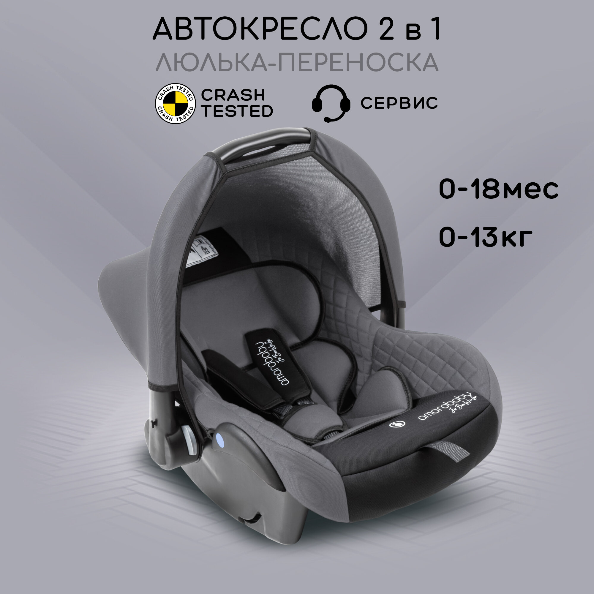 Автокресло детское AMAROBABY Baby comfort, группа 0+, (серый)