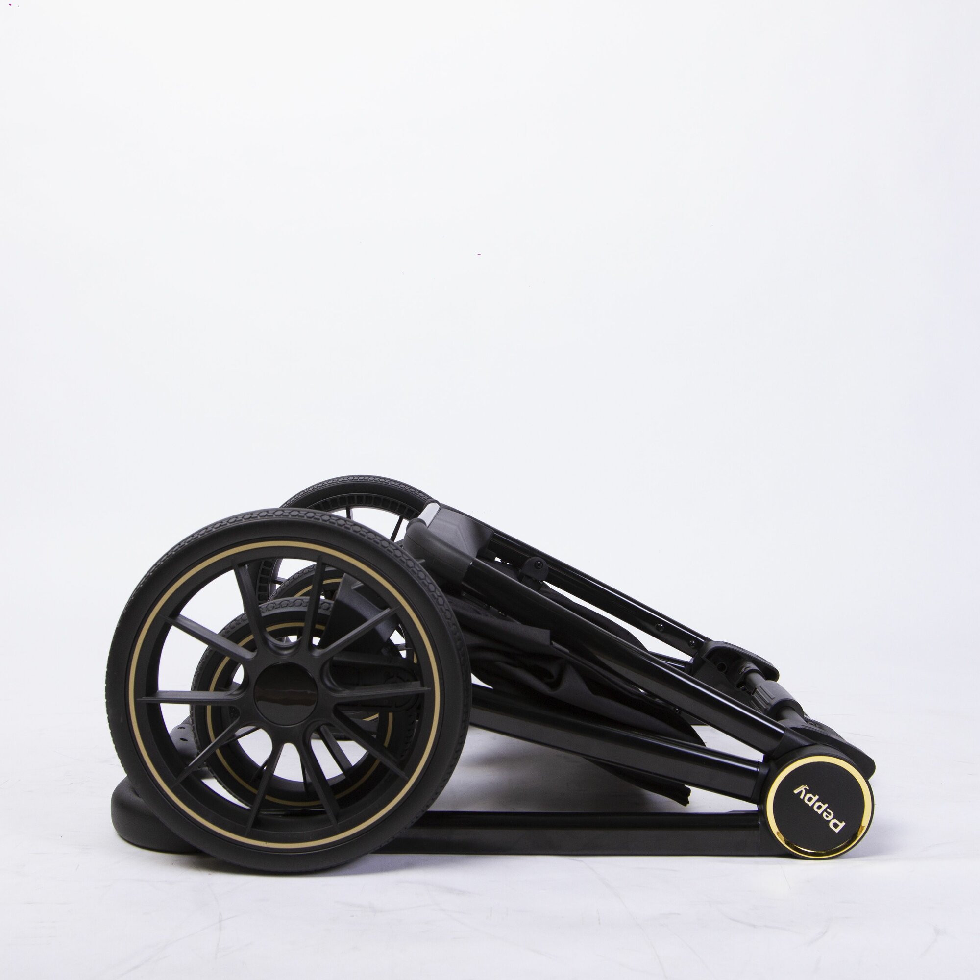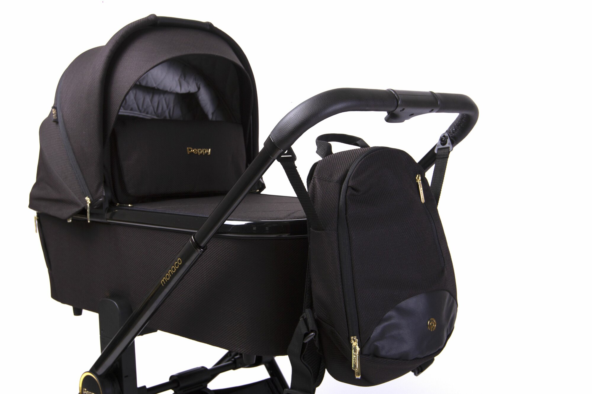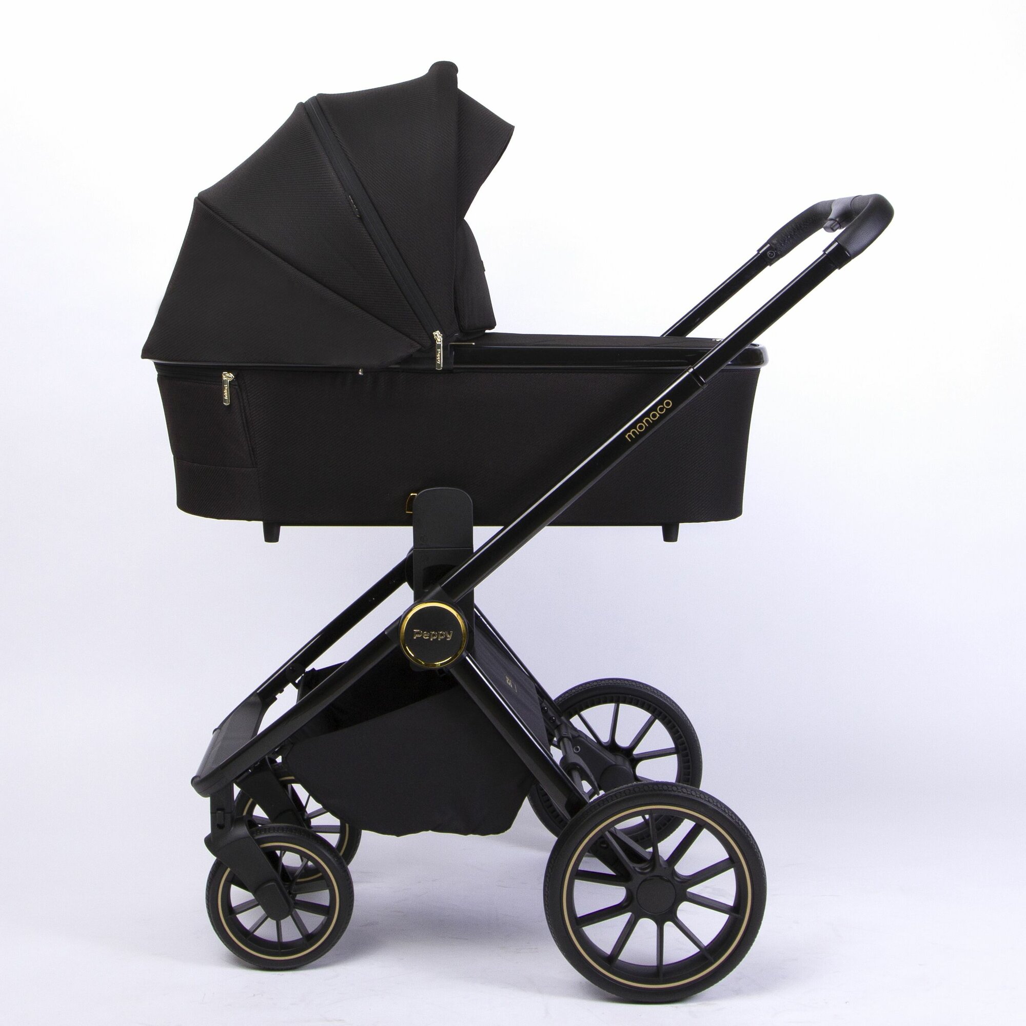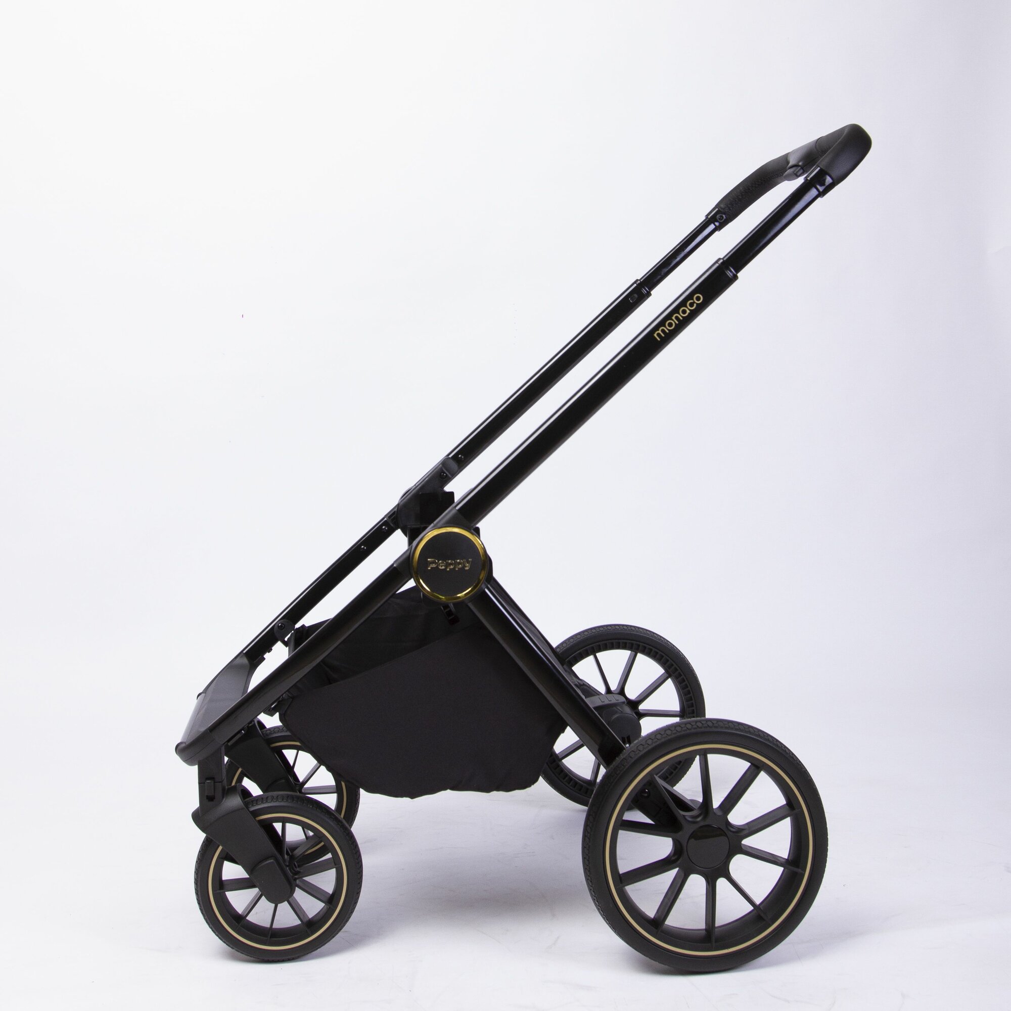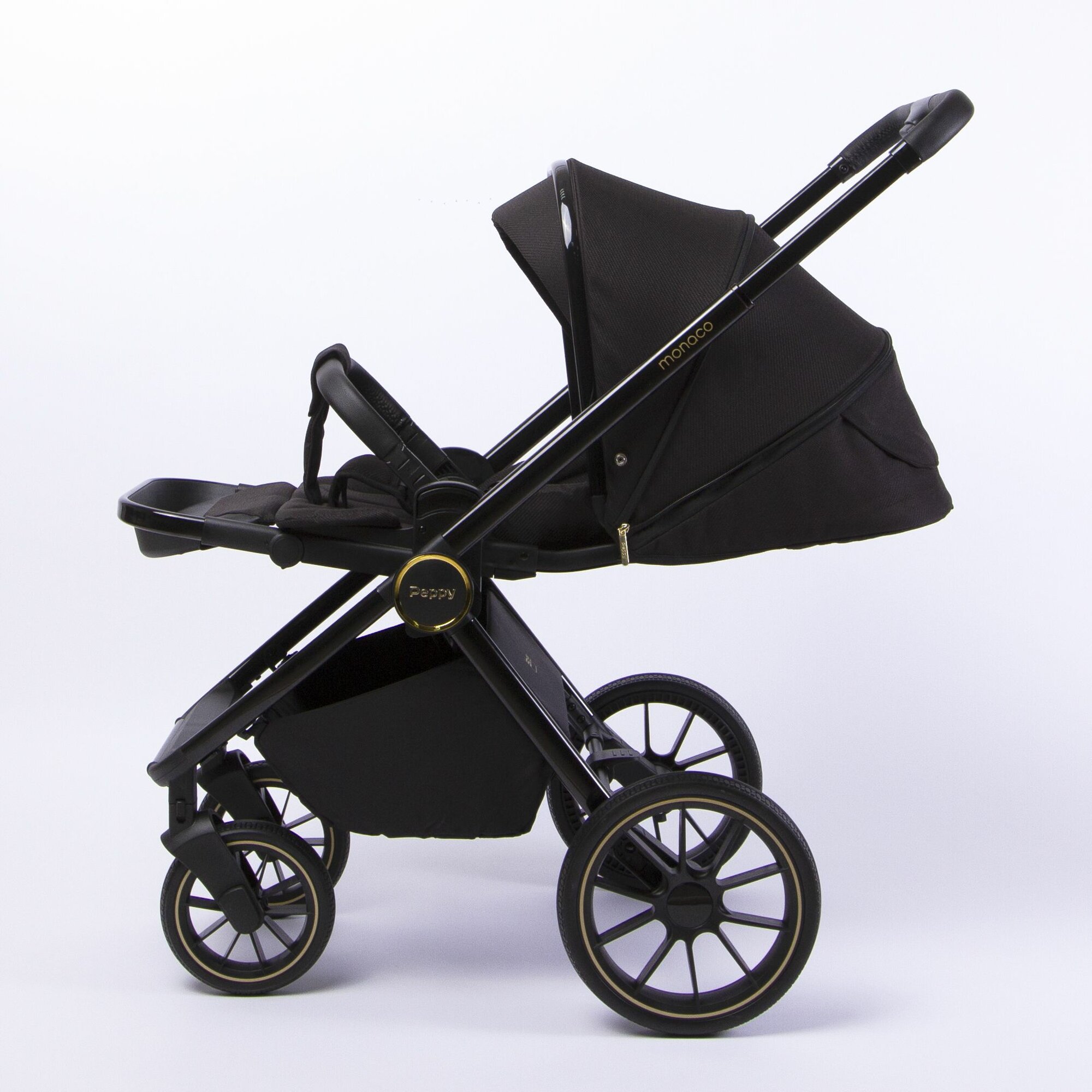 Коляска детская Peppy Monaco 2 в 1 GP Rose Black (черный), рама черн-золотая, шлифованный алюминий