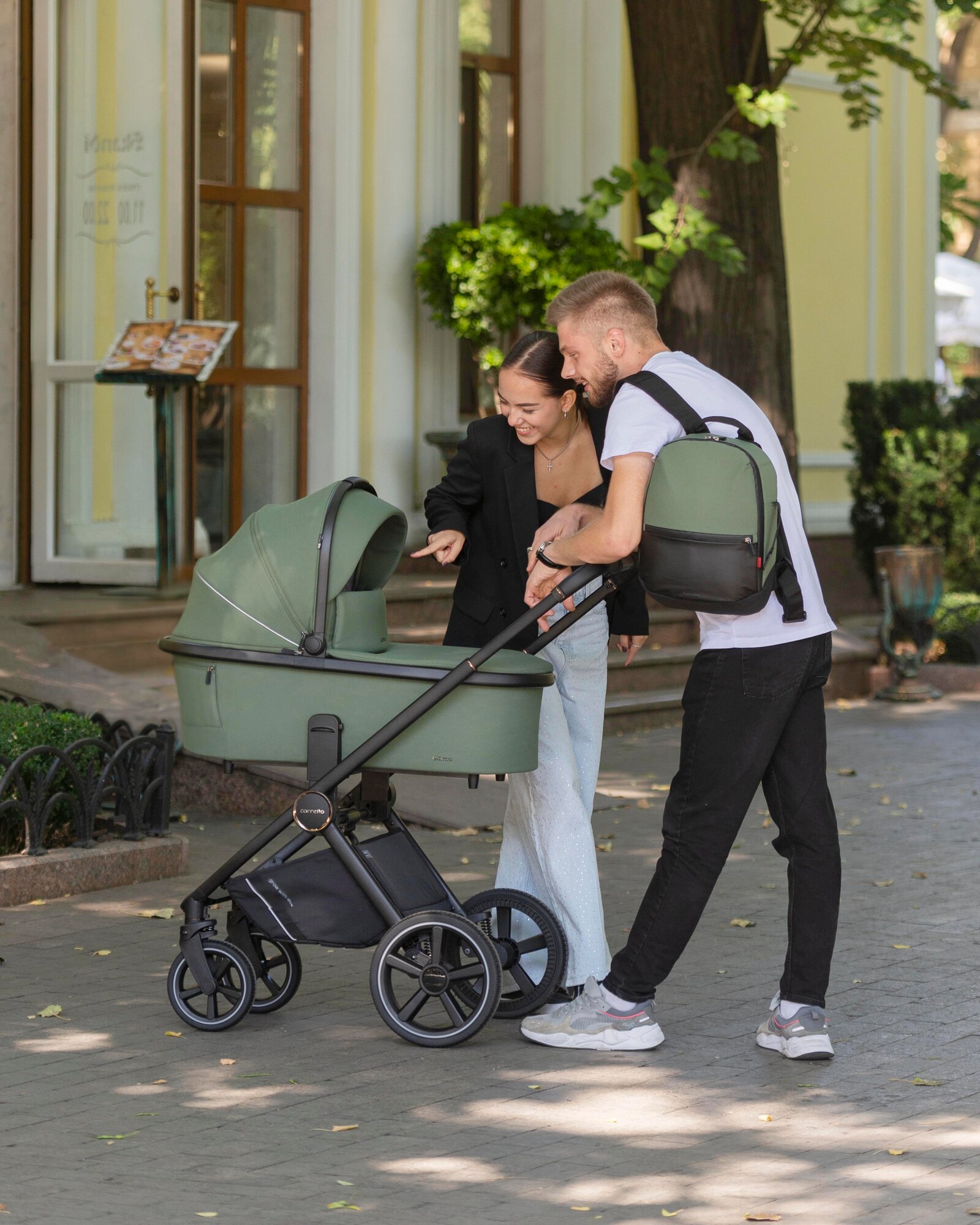 Коляска 3в1 Carrello, цвет шасси черный матовый, цвет товара зеленая олива, возраст 0+