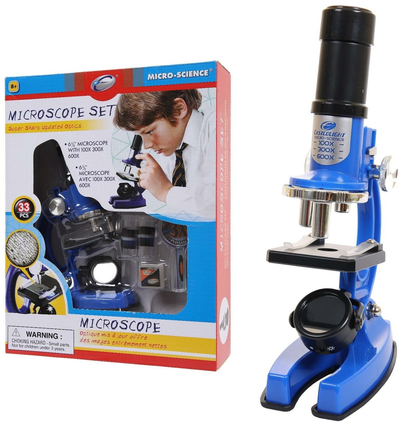 Микроскоп EASTCOLIGHT33 предмета, синий, увеличение 100х300х600х 21331