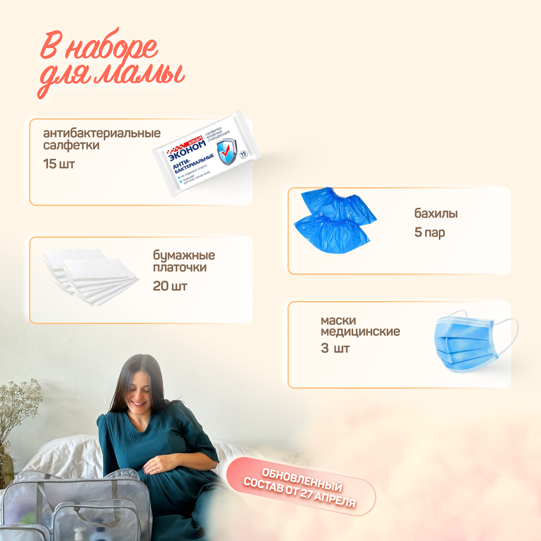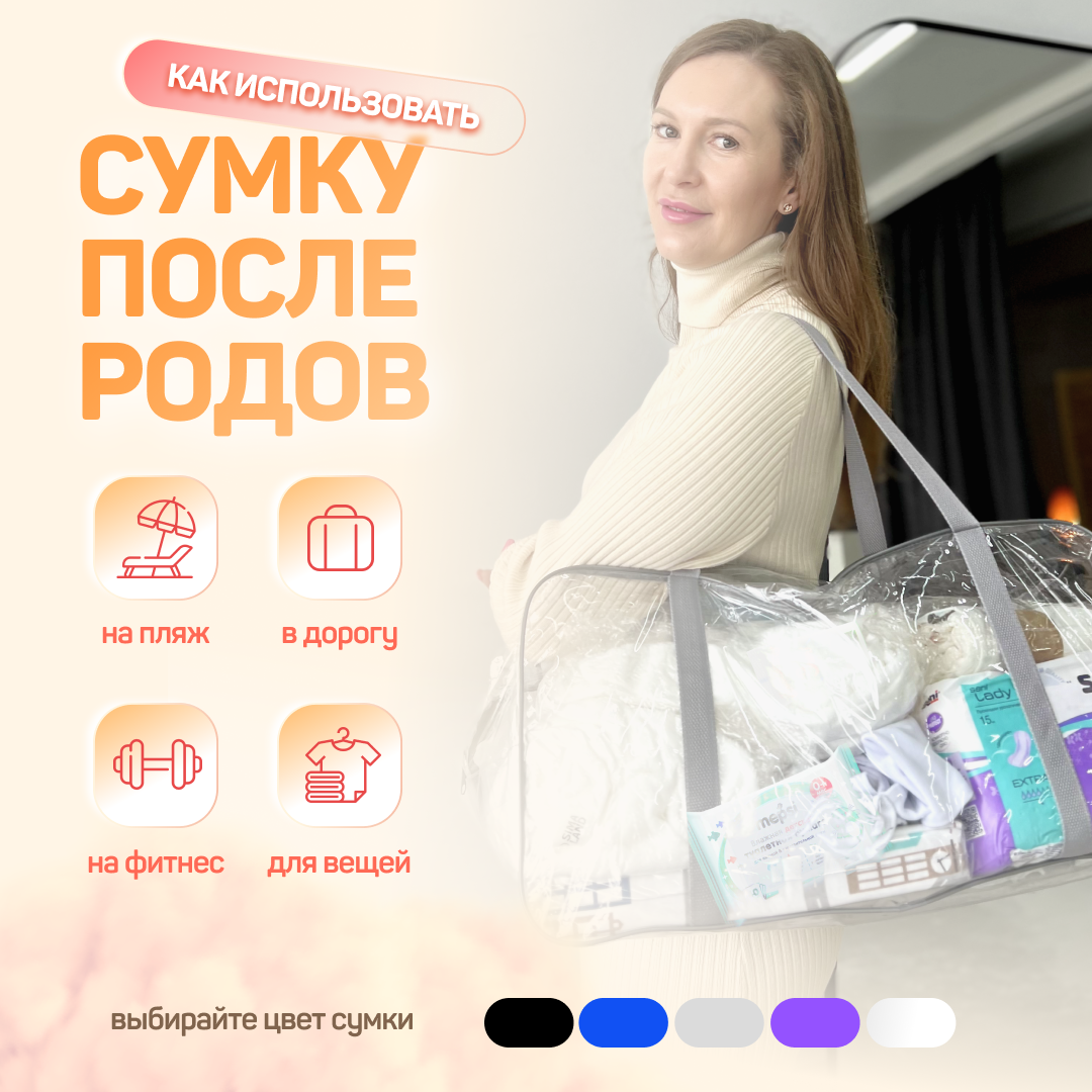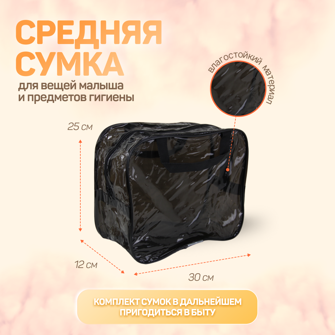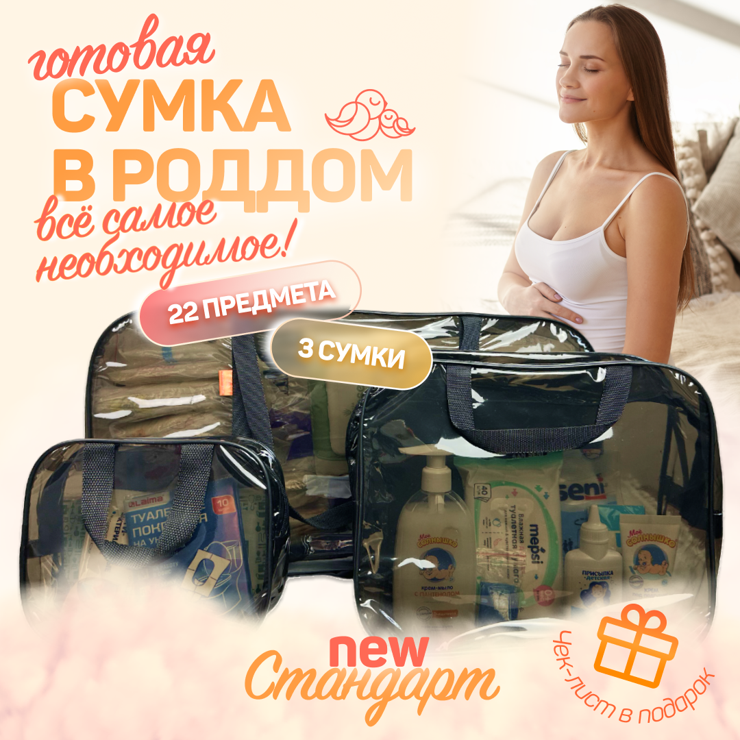 Сумка в роддом готовая для мамы и малыша с наполнением, 22 предмета, 3 сумки "Стандарт", прозрачная