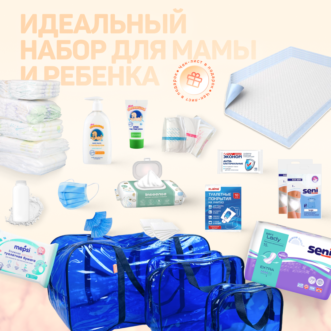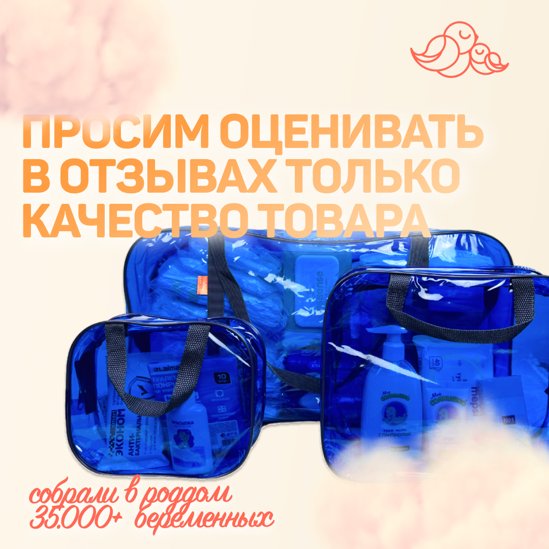 СохранитьСумка в роддом готовая для мамы и малыша с наполнением, 22 предмета, 3 сумки "Стандарт", синяя интересное: