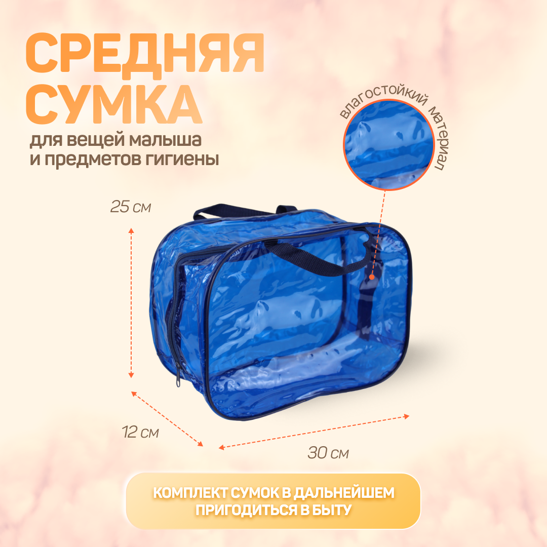 Сумка в роддом готовая для мамы и малыша с наполнением, 22 предмета, 3 сумки "Стандарт", прозрачная
