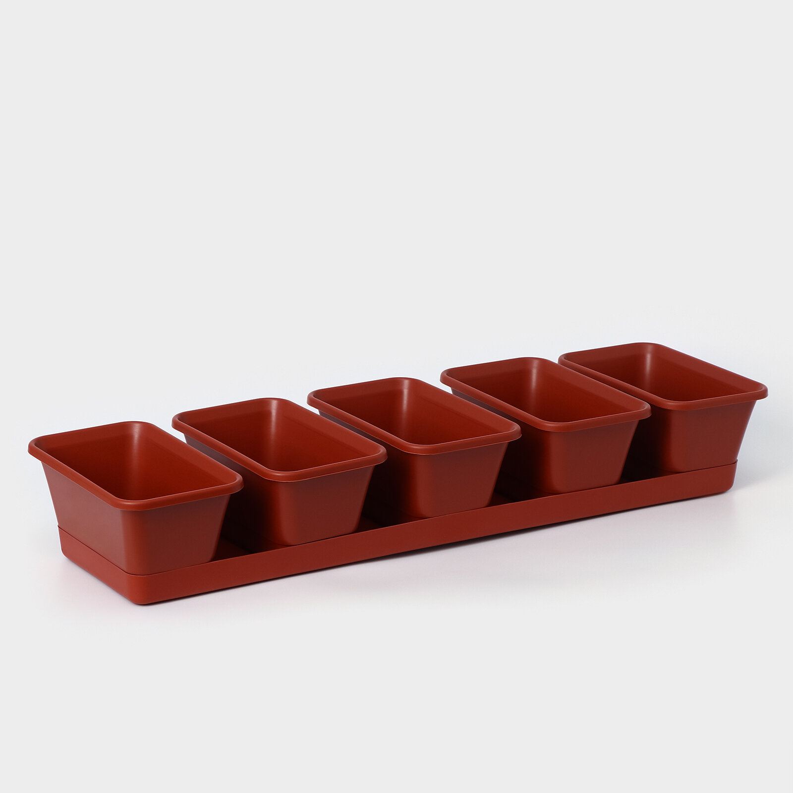 Набор горшков для цветов с поддоном 750 мл, 53 см, 5 шт, цвет терракотовый