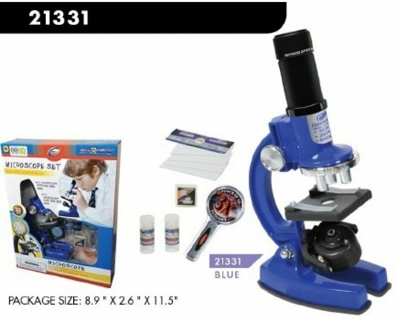 Микроскоп c аксессуарами увеличение 100х300х600х, 33 предмета, синий, металл, пластмасса 21331