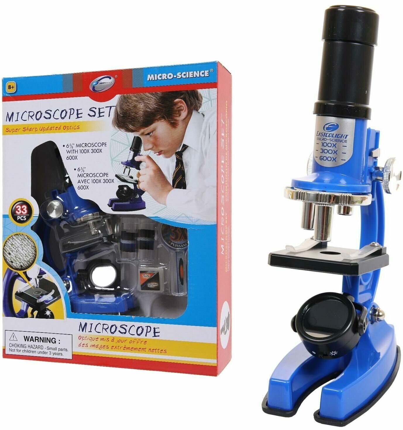 Микроскоп EASTCOLIGHT33 предмета, синий, увеличение 100х300х600х 21331