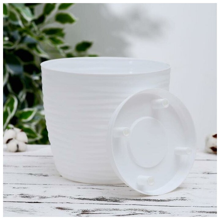 Горшок для цветов «Дюна», с поддоном, 3 л, h=16.5 см, d=18 см, цвет белый