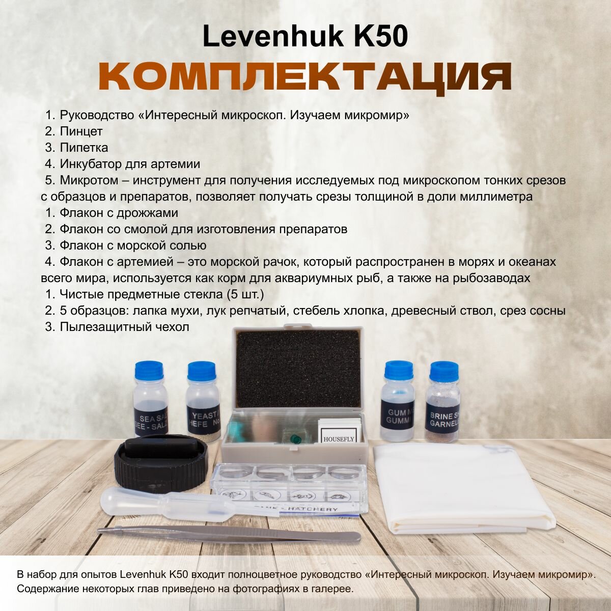 Набор для опытов с микроскопом Levenhuk K50 интересное: