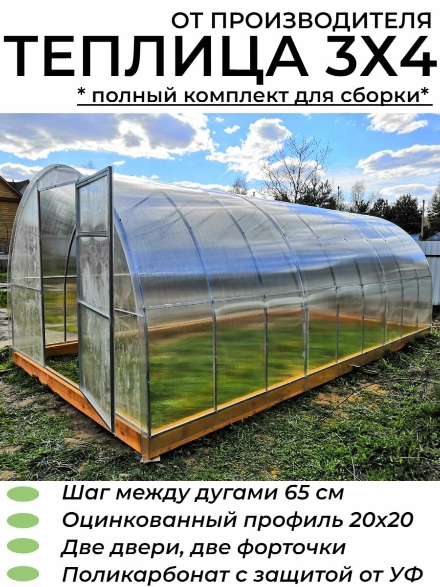 СохранитьТеплица Арочная (Поликарбонат в комплекте), оцинкованный каркас 20*20 мм, полный комплект для сборки. 3х4х2.02м, шаг 65 см интересное: