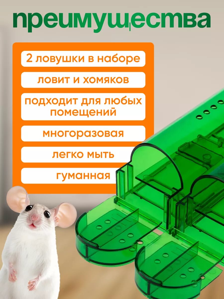 Мышеловка гуманная, ловушка для мышей, механическая, пластик, 2 штуки интересное: