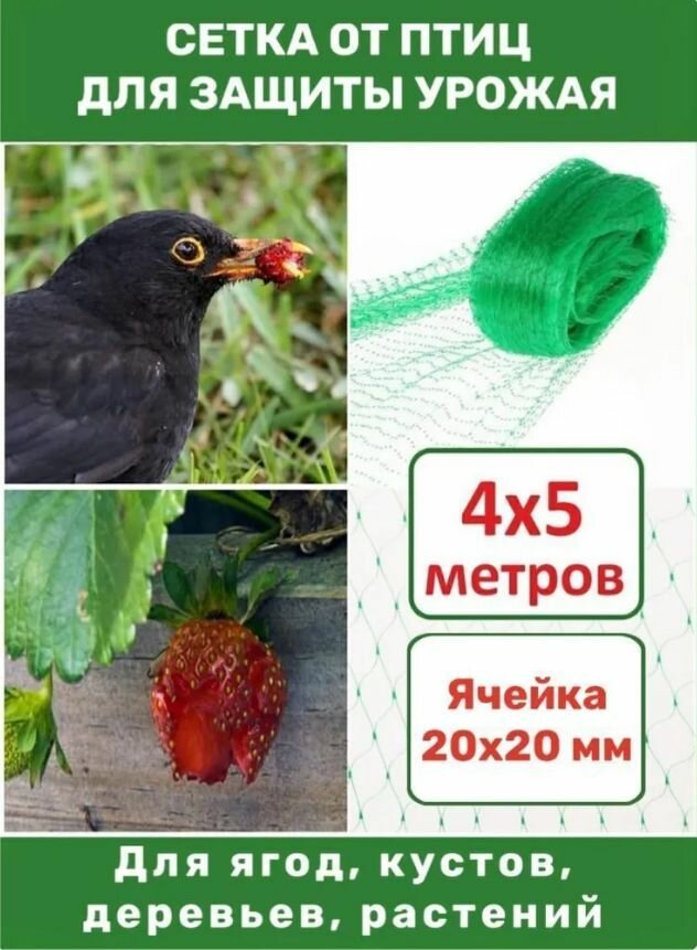 Сетка садовая для защиты от птиц Ягодка 4х10м интересное: