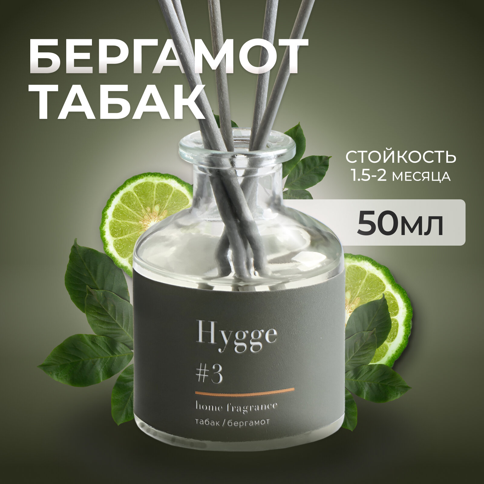 Аромат для дома, аромадиффузор, №3 табак-бергамот / Hygge 50 мл