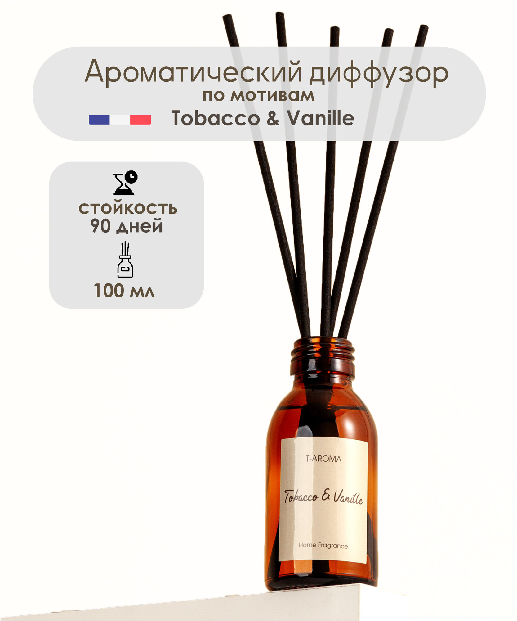 Ароматический диффузор для дома с палочками аромат Табак и ваниль Tobacco Vanilla, 100 мл интересное: