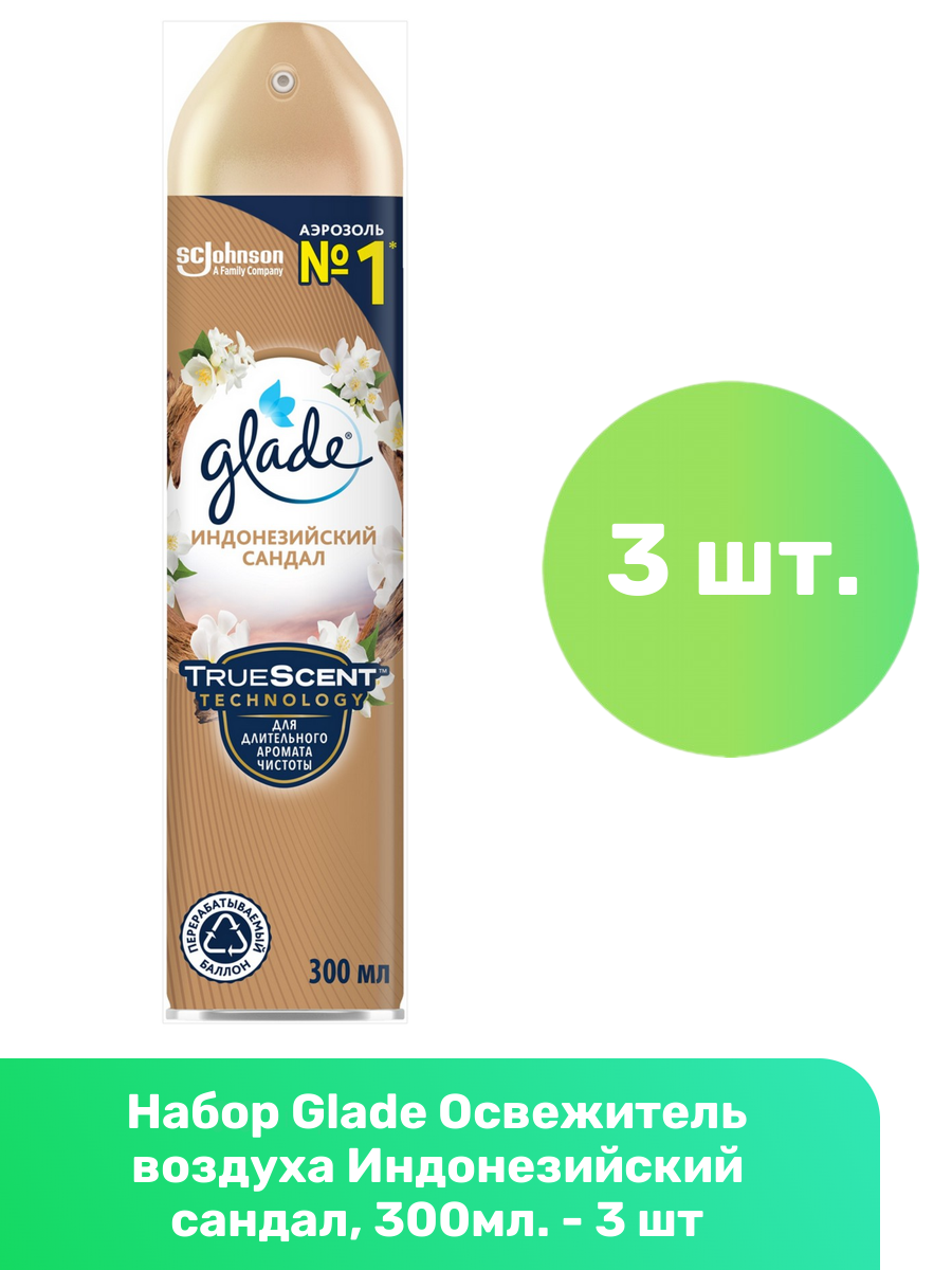 Набор из 3 штук Освежитель воздуха аэрозоль Glade Индонезийский сандал 300мл
