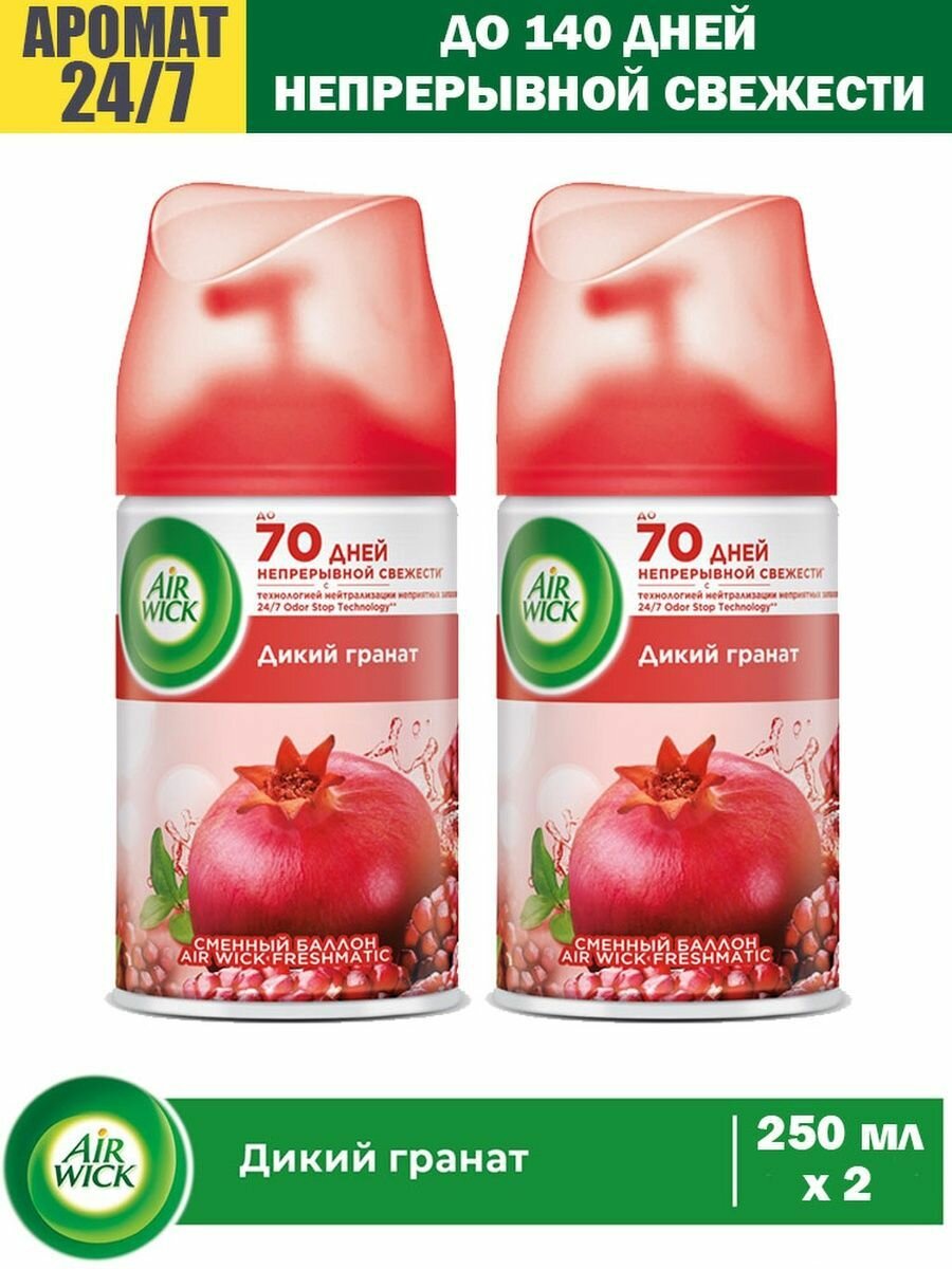 Сменный баллон к автоматическому освежителю Air Wick Freshmatic Дикий гранат 250 мл. х 2 шт