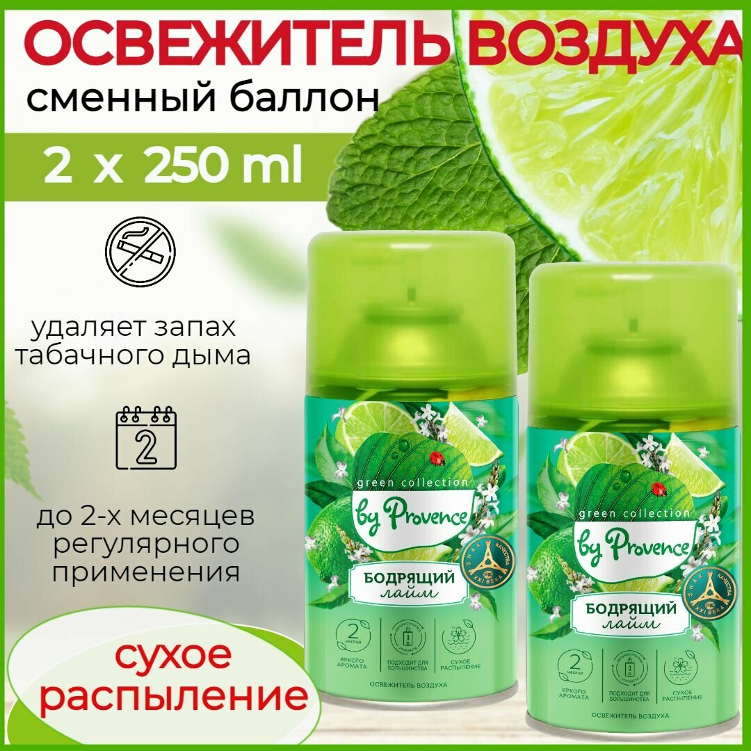 Купить Набор 2 штуки Освежитель воздуха автоматический Бодрящий Лайм Green collection by Provence Сменный баллон для освежителя воздуха