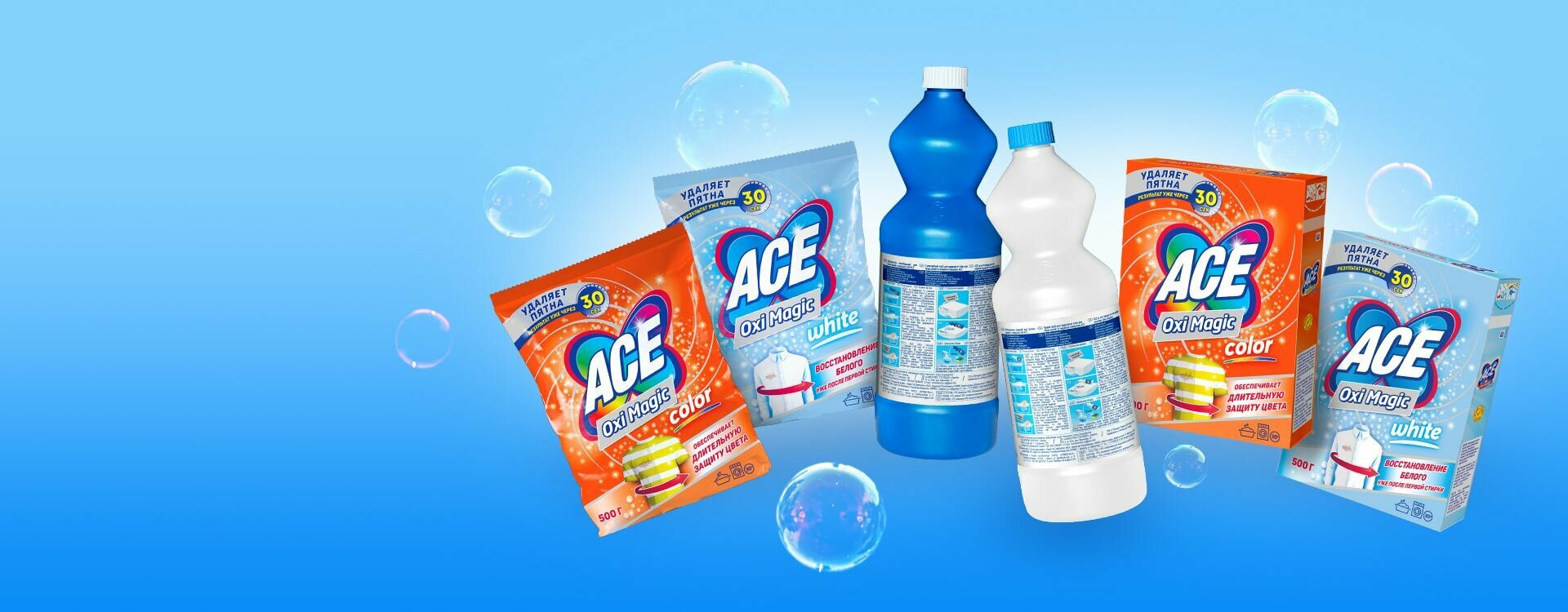 ACE 500гр порошок для цветного белья, Oxi Magic Color Пятновыводитель, 2шт