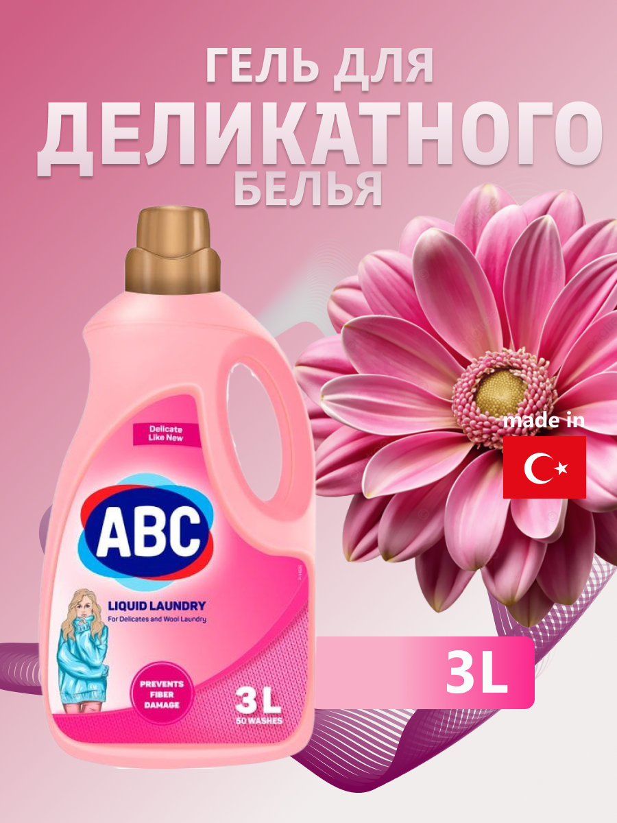 Гель для стирки АВС для Деликатных тканей, 1500 мл./ Жидкое средство для стирки, 1.5л/ АБЦ Турция