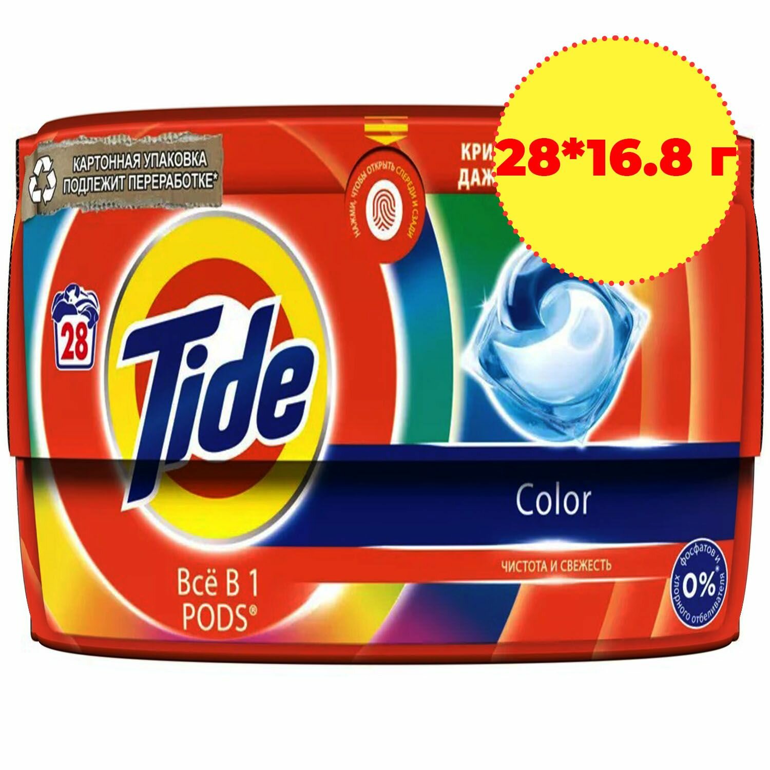 Купить Tide Всё в 1 Color Капсулы Для Стирки 28шт., картонная упаковка