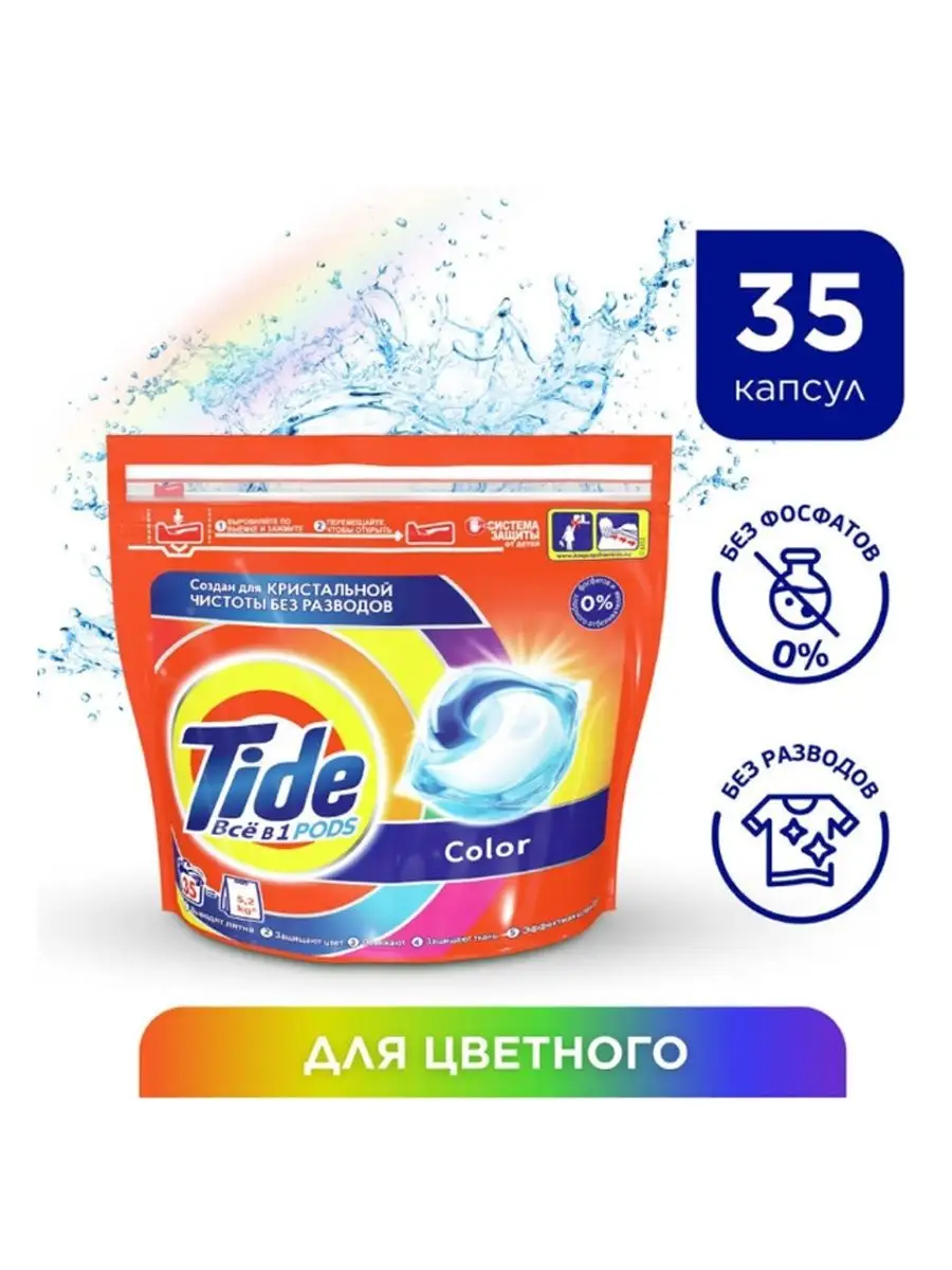 Tide ВСЁ в 1 PODs Капсулы Для Стирки Color 35 Стирок, Глубоко Очищает, Удаляет Пятна, Придает Яркость, Освежает И Эффективно Действует Даже При 20 °С