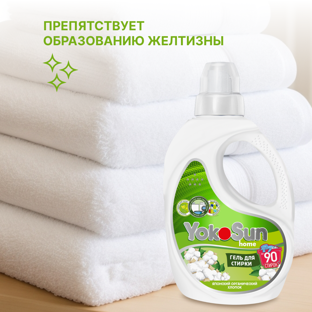 Гель для стирки YokoSun, Японский органический хлопок, 1л / Гипоаллергенный концентрированный универсальный жидкий стиральный порошок для белых и цветных вещей, для всех типов тканей, без хлора и фосфатов, эко, подходит с рождения