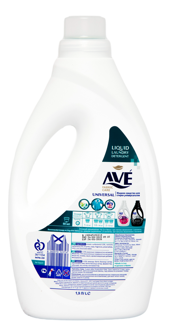 Купить Универсальное жидкое средство (гель) для стирки AVE 1,9л