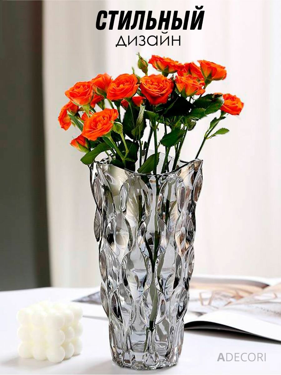 Ваза стеклянная интерьерная, 24 см, прозрачная, Аврора