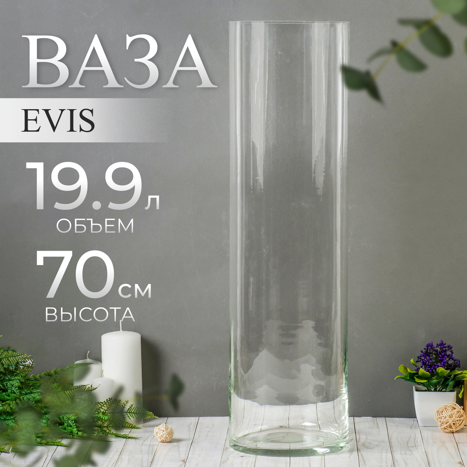 Ваза Evis "Трубка" h-38. d-25 см 17 л