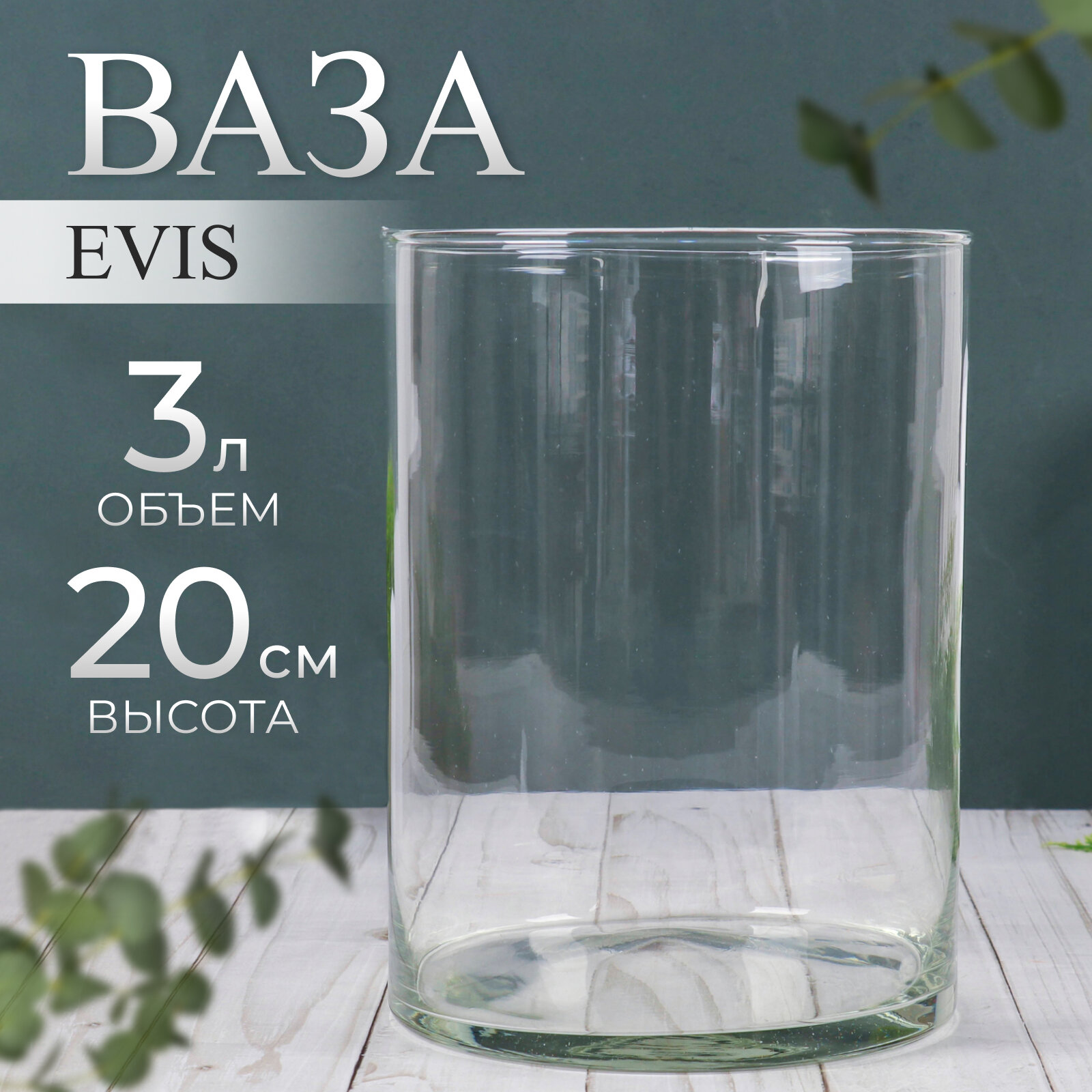 Evis Ваза "Клавдия" средняя d-9см 20х12см, 1,6л прозрачная