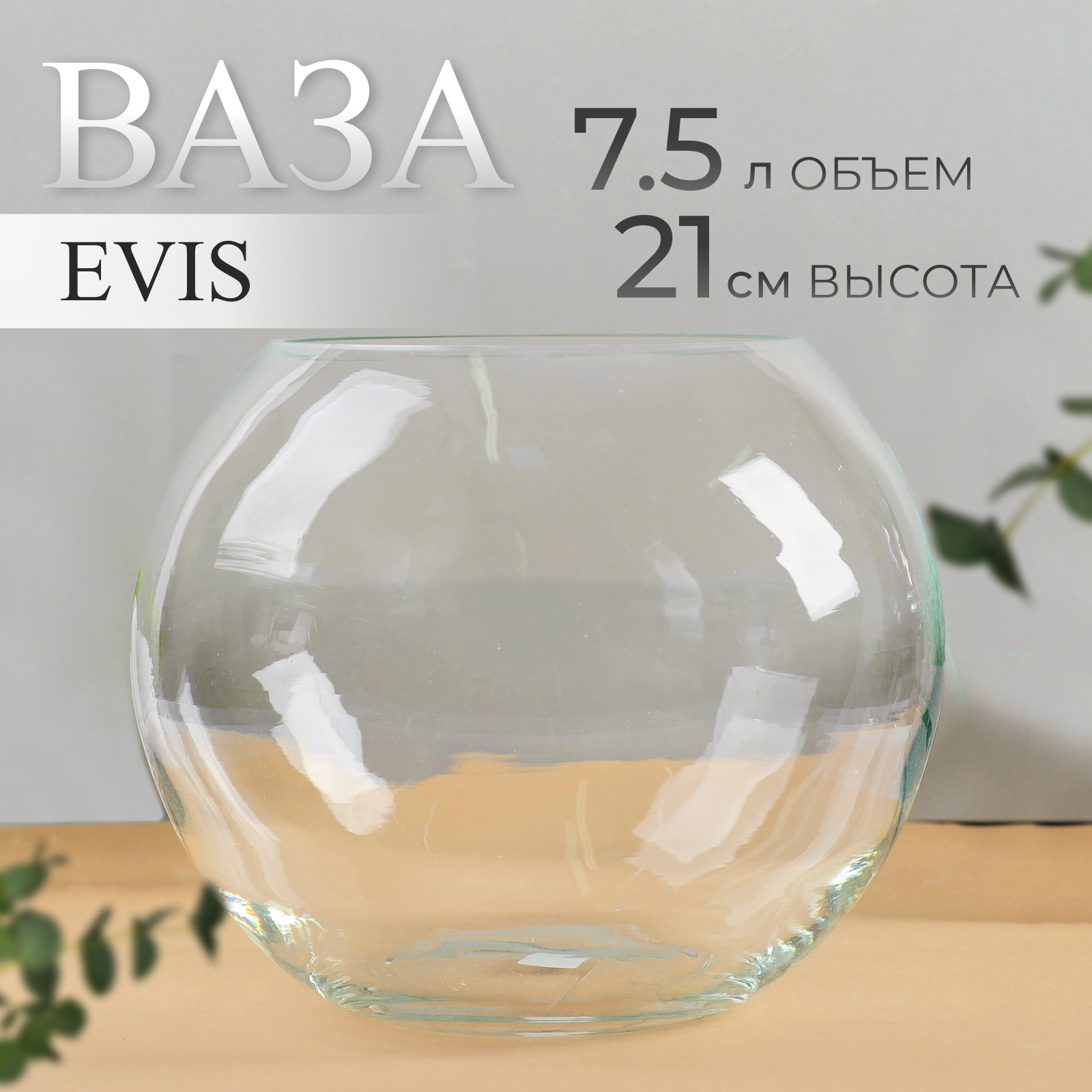 Купить Ваза"Шаровая" горл.d-15.5см, 23х21 см, 7,5л 2071 прозрачная Evis 760491