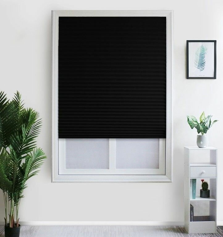 Самоклеящиеся шторы-плиссе размер 60х180см, цвет черный Крепление без сверления