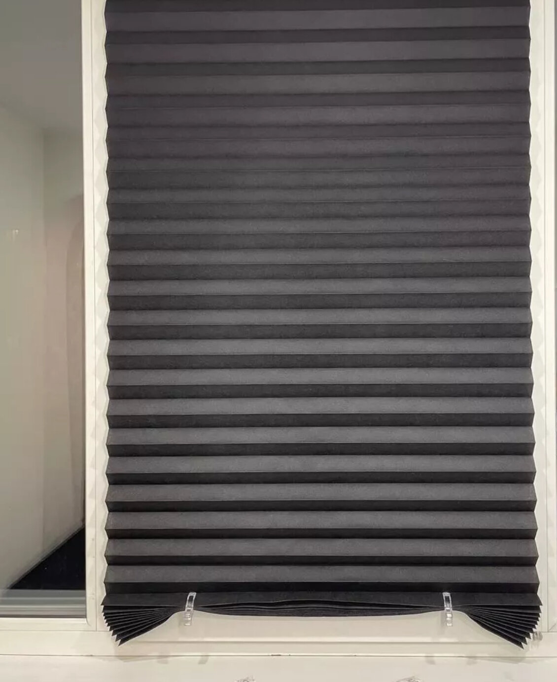 Жалюзи плиссе, чёрный блэкаут, 90х180см, самоклеящиеся, без сверления