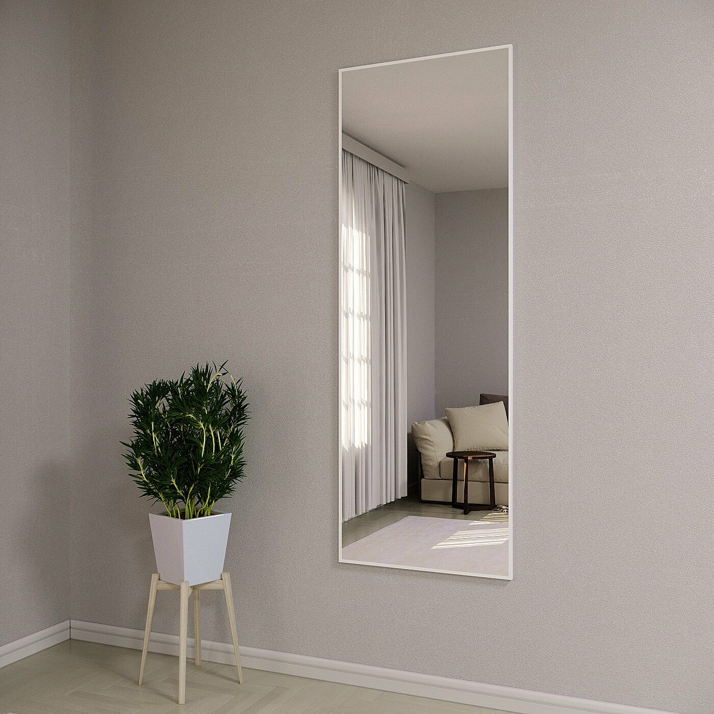 Зеркало настенное в алюминиевой раме Market-house , 190х60 см. Белое