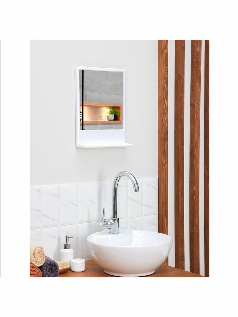 Зеркало настенное для ванной комнаты Berossi с полкой белое 29х37см пластиковое Крепеж в комплекте