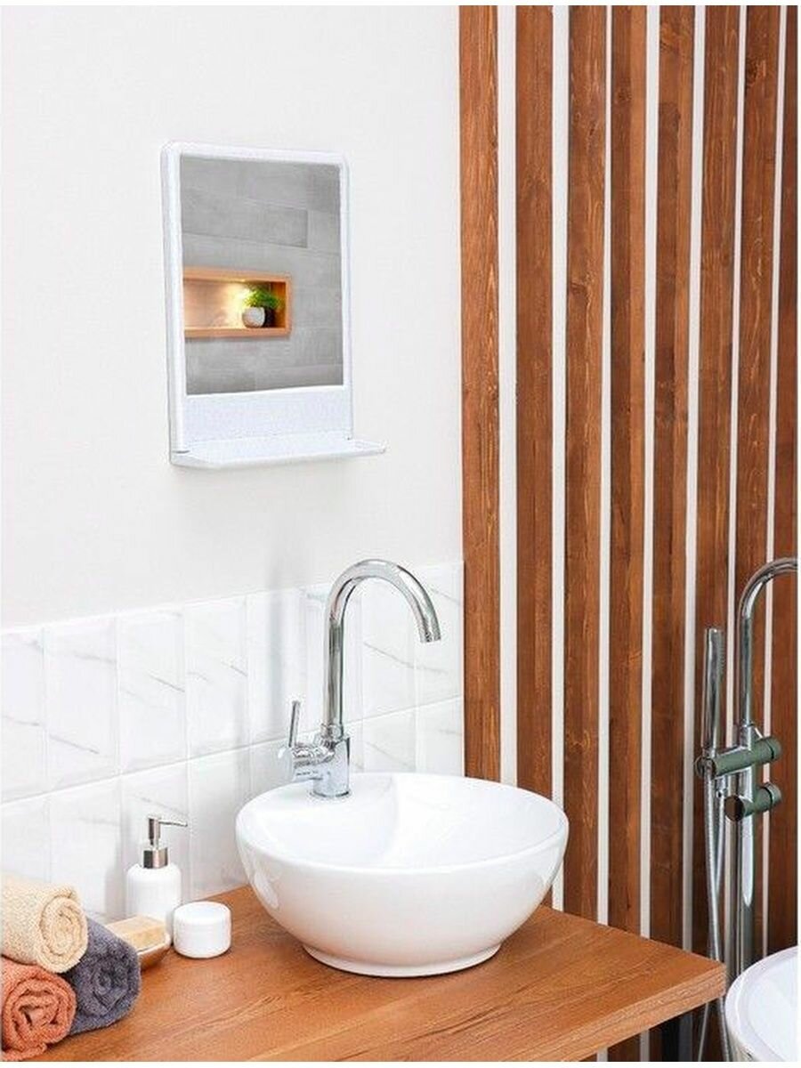 Зеркало белое настенное с полочкой с креплением 29х37см интересное: