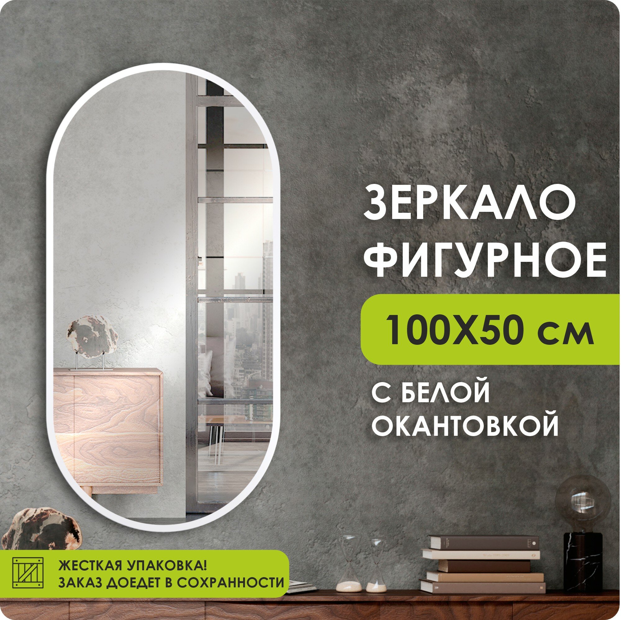Купить Зеркало настенное, зеркало, 50х100 овальное, белое