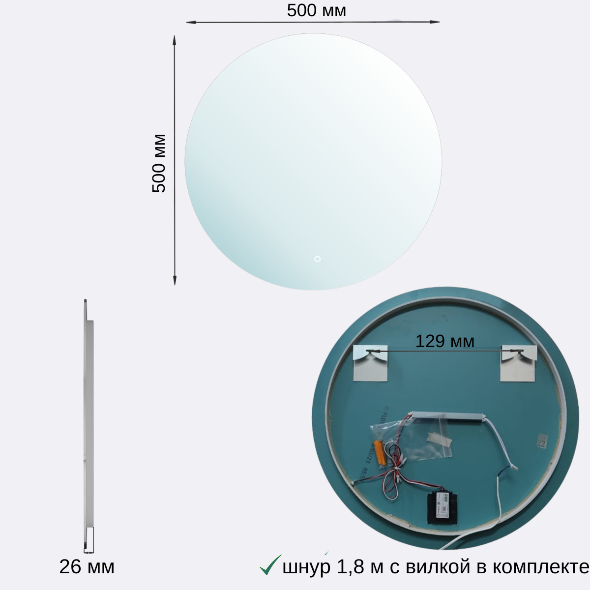 Зеркало круглое Мэри 50 с подсветкой и сенсорным выключателем интересное: