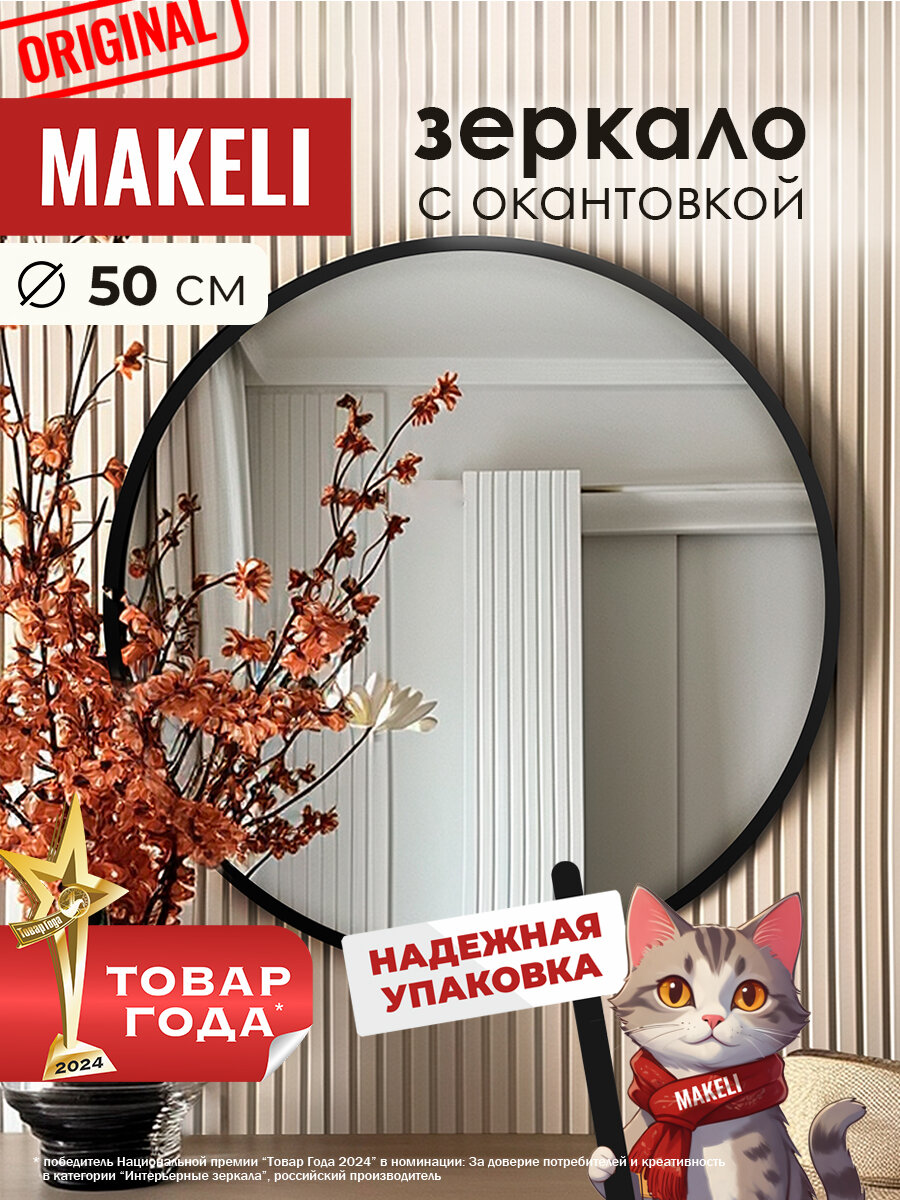 Купить Круглое зеркало Makeli 50 см, с черной окантовкой, для ванной и интерьера