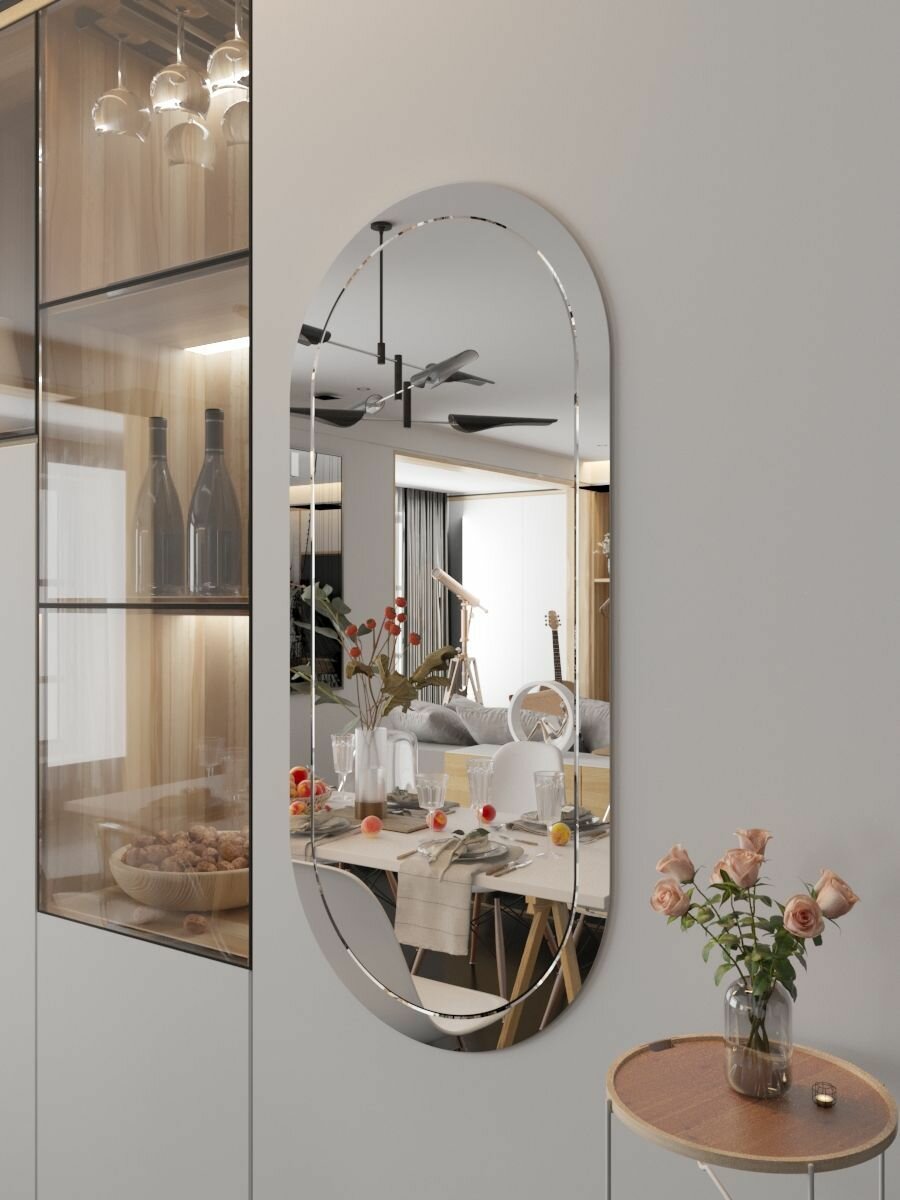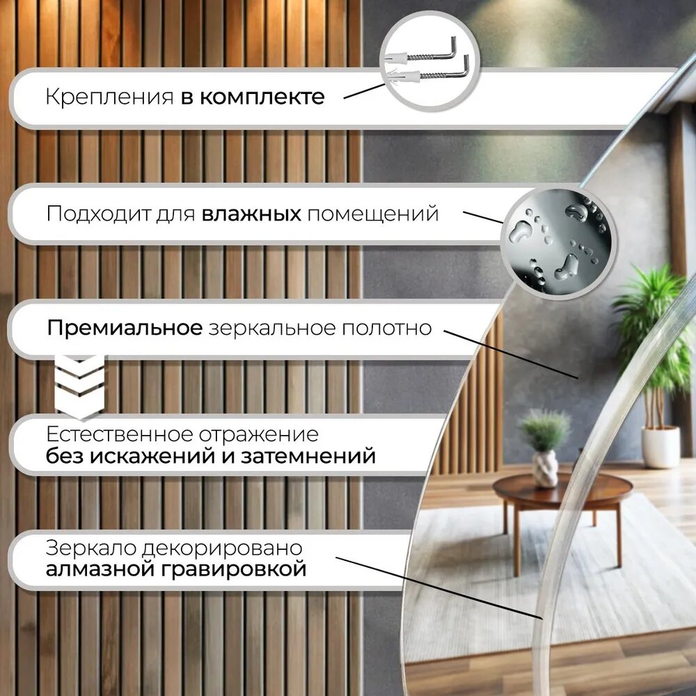 "Зеркало MAKELI" - настенное капсульное зеркало с гравировкой, без рамы, универсальное